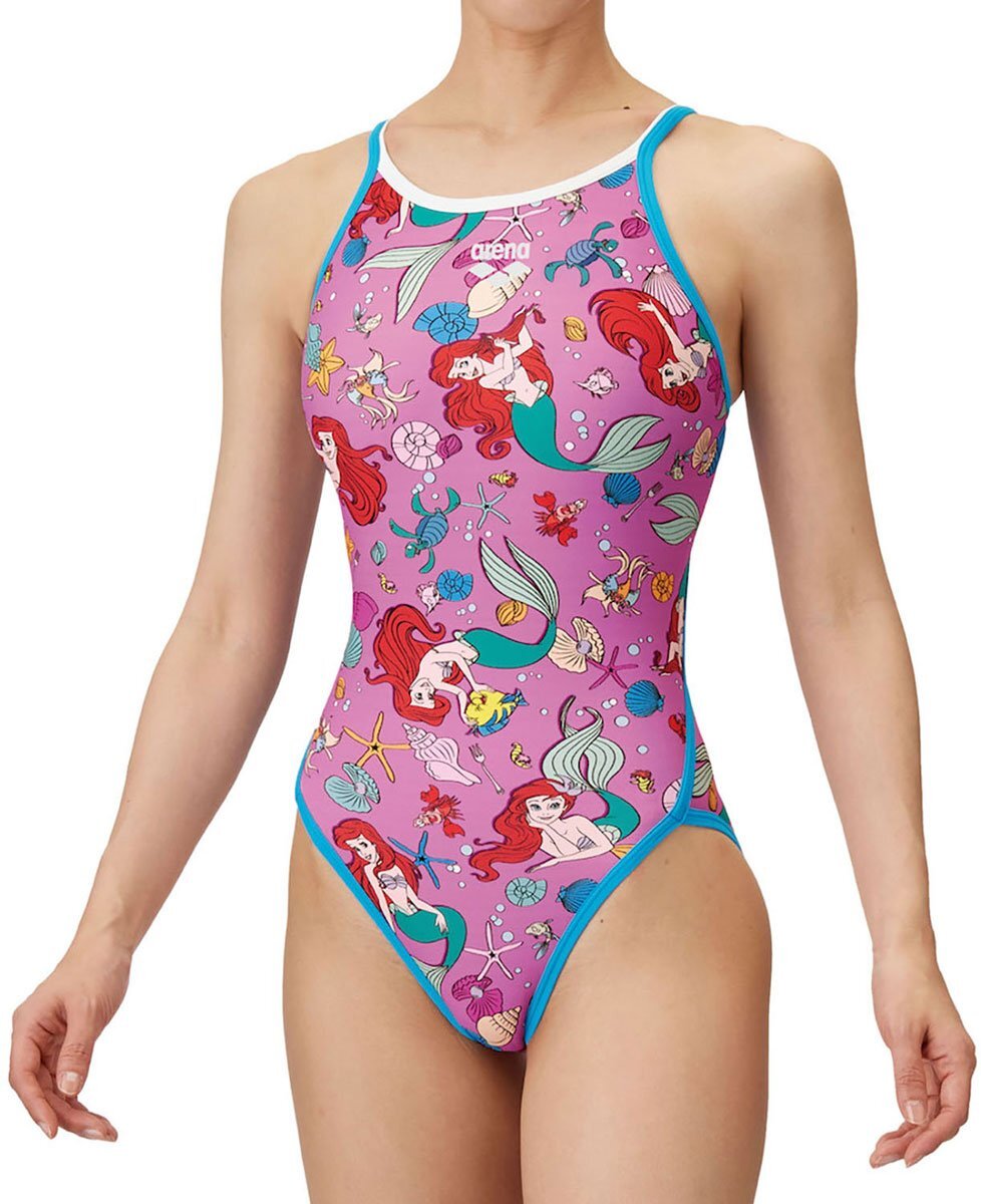 | 詳細 | 耐久性に優れた TOUGHSUIT(タフスーツ)シリーズの Disney(ディズニー)デザインモデル。 環境に配慮したリサイクルポリエステル素材を使用しており、塩素に強く長持ちするため、大会に向けて練習を重ねる頻度が高いスイマーにおすすめのトレーニング(練習)用水着。 映画『リトル・マーメイド』に登場するプリンセス ’アリエル’ が海の中で友達の ’フランダ―’ と一緒に遊ぶ様子が描かれたデザイン。 貝殻やヒトデなど、海を連想するモチーフを色鮮やかなカラーリングで可愛く表現。 ’アリエル’ たちと一緒に気分を上げて、プールで泳ごう!水着のデザインとお揃いのメッシュキャップ(AS5SSC82U)やプルーフバッグ(AS5SBZ85U)との組み合わせもおすすめ。 ※こちらの水着は、パッドが取り付けられる仕様となっておりますので、別売りひっかけパッドをご購入いただければ、パッドあり水着としてもご着用いただけます。この製品は縫製上、一点一点プリント柄の見え方に違いが生じますので予めご了承ください。 PKBLピンク×ブルー SS,S,M,L,O 水着 スイムウエア 水泳 競泳 スイミング スイム 試合 レース プール トレーニング 練習 練習用 レディース 大人 女性 |