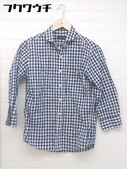 ◇ ◎ nano universe Construction by Atelier ナノユニバース ギンガムチェック 長袖 シャツ サイズS ネイビー系 メンズ