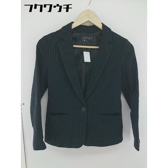 ◇ INDIVI インディヴィ ストライプ 1B 長袖 テーラードジャケット サイズ36 ブラック グレー系 レディース
