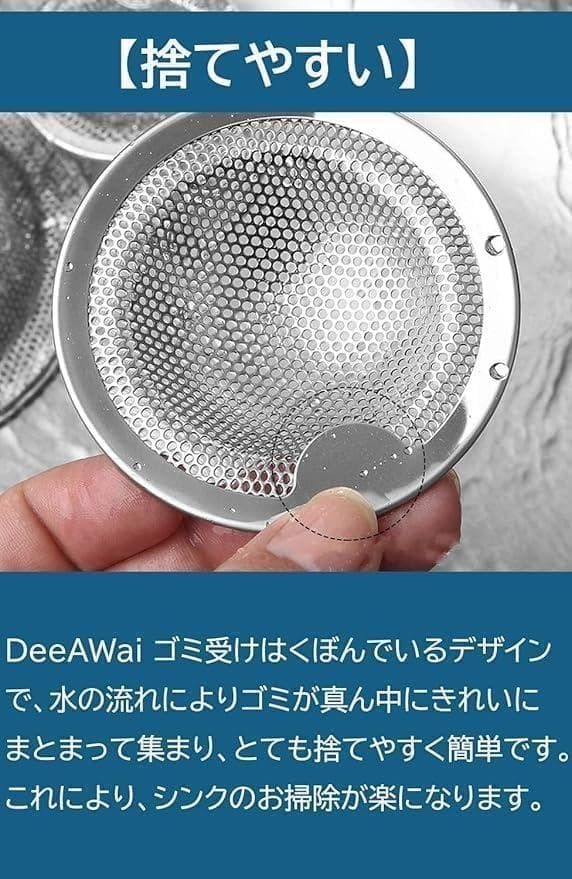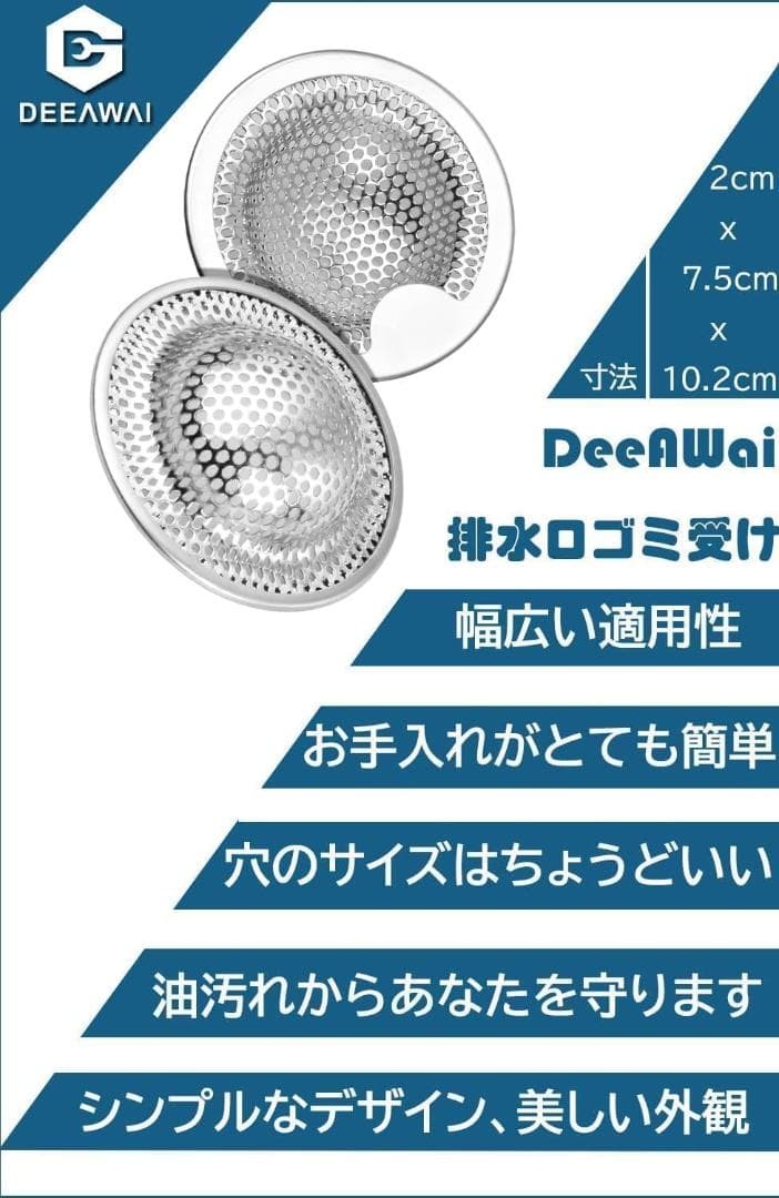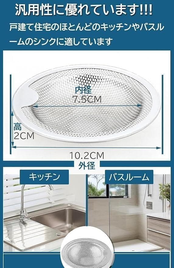 排水口 ゴミ受け 2個 | 直径7.5~10cm排水口対応 | ユニットバス キッチン シンクゴミ受け | ヘアキャッチャー パンチング穴 | DeeAWai ステンレス 排水溝 ゴミ受け 使いやすい | 掃除 大掃除 (2個, φ10.2cm)(24時間以内に配達) 適用サイズ:直径7.5~10cm、高さ2cm以上のキッチン、お風呂、洗面所、排水皿などの排水溝に適用可能です。製品内容:排水溝用ゴミ受け2個(内径7.5cm、外径10.2cm、高さ2cm) 実物の写真は8枚目からになります。 トップ画像や商品説明と相違がある可能性がありますので実物の写真を確認してからのご購入お願いします。 もし相違や商品説明と違う場合はコメントくださいませ。商品詳細をお調べいたします。 不安がある方、完品を求める方は購入しないでください。 即日発送。 開封痕、使用痕等がある場合がございます。 外箱の破損や多少のビニールの破れ等は不問としております。 本商品は訳あり商品となっているため、箱が潰れている、ビニールが破けている、指紋が若干ついている、などの可能性がございます。 検品は最低限しておりますが使用感や部品不足など見逃している可能性もございます。 1100円以上の商品はフォロー+商品購入希望コメントで100円お値引き致します。 発送方法は最安値で送るため変更になる場合もございます。 必ずプロフィールを一読、了承されてからのご購入お願いします。 購入後のクレームは対応しかねますので上記をしっかりとご理解いした上でのご購入をお願いします。 管理用箱番号【125B401】 |