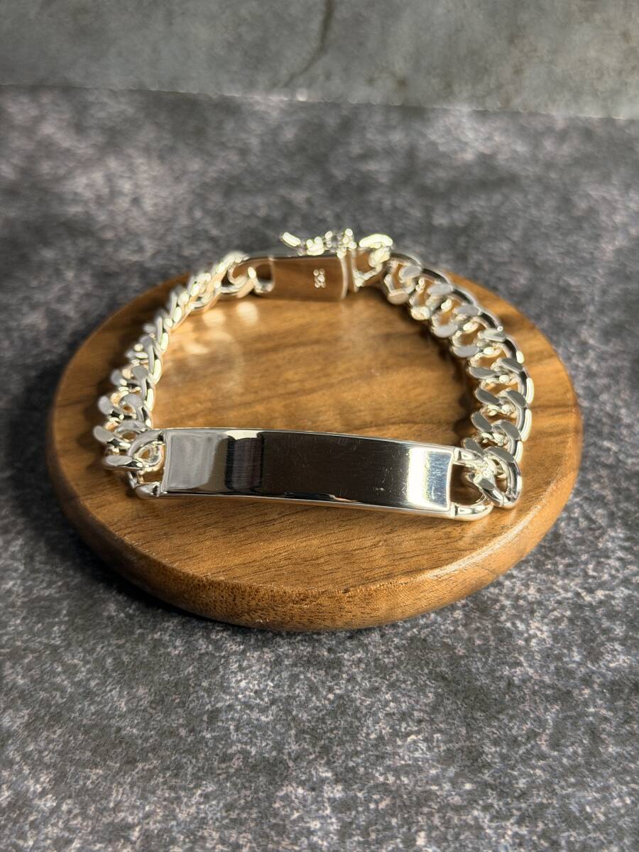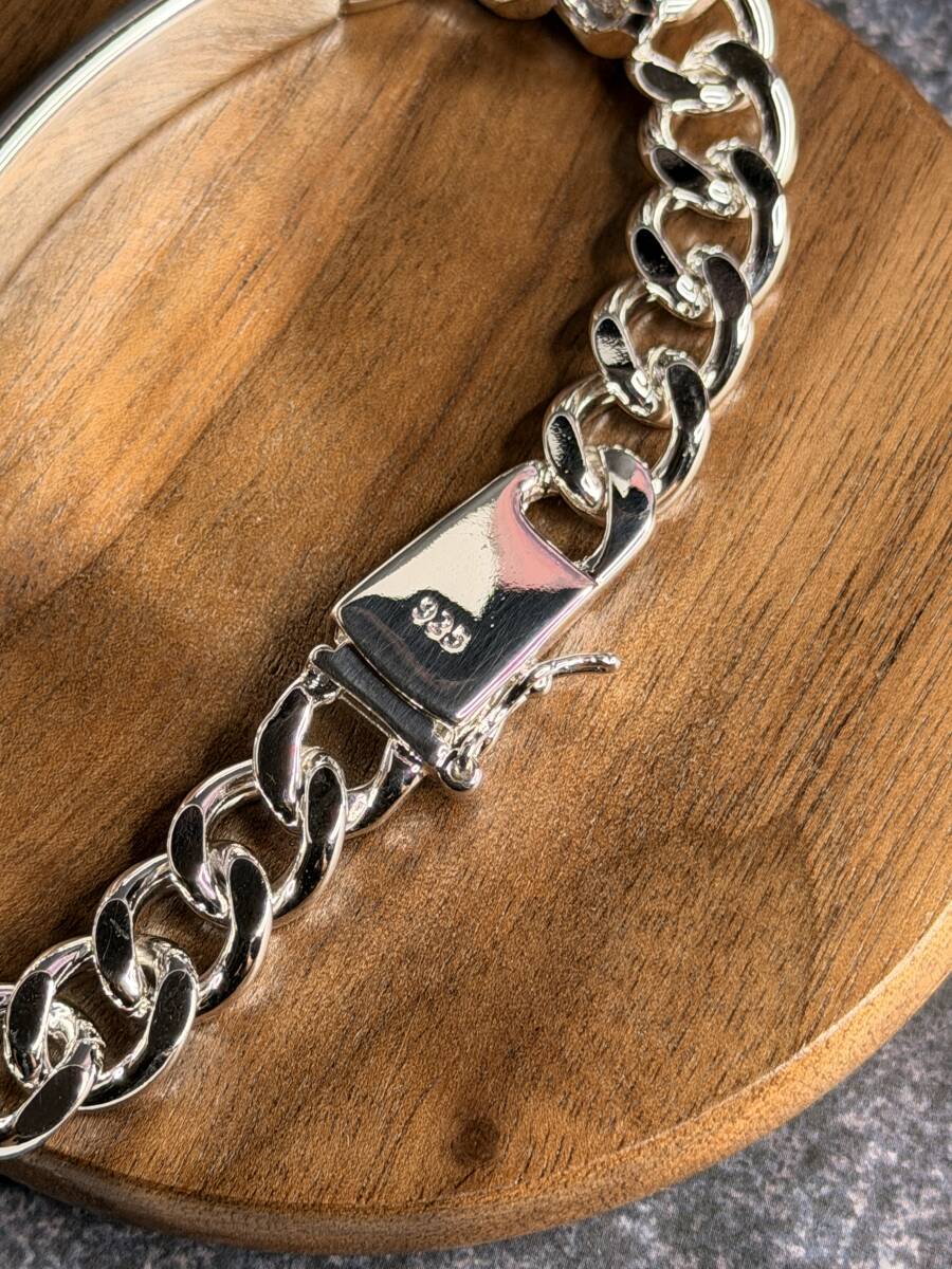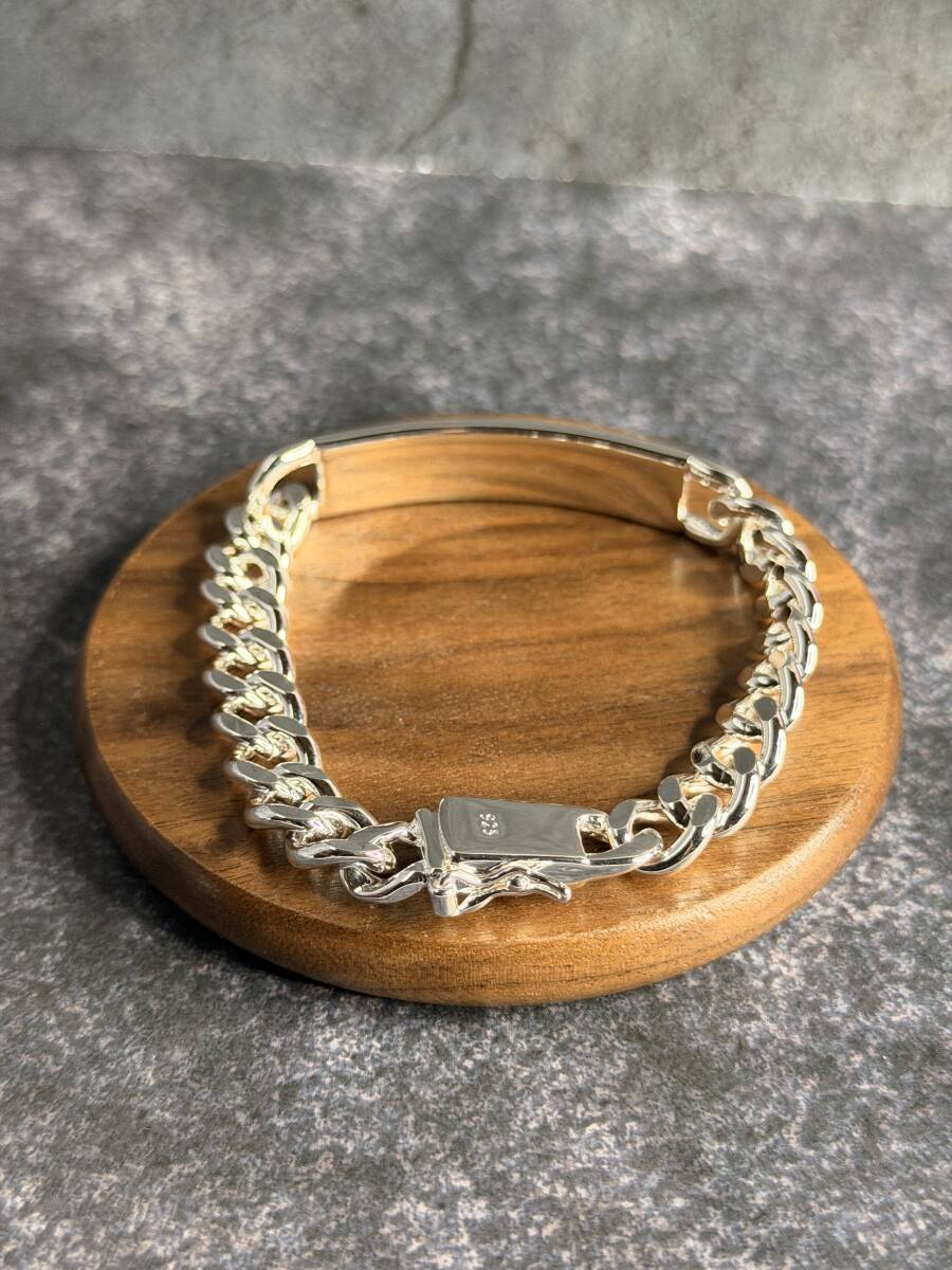 シンプルで高級感のあるIDプレートに、ほどよいボリュームの喜平チェーンを合わせたシルバーブレスレットです。