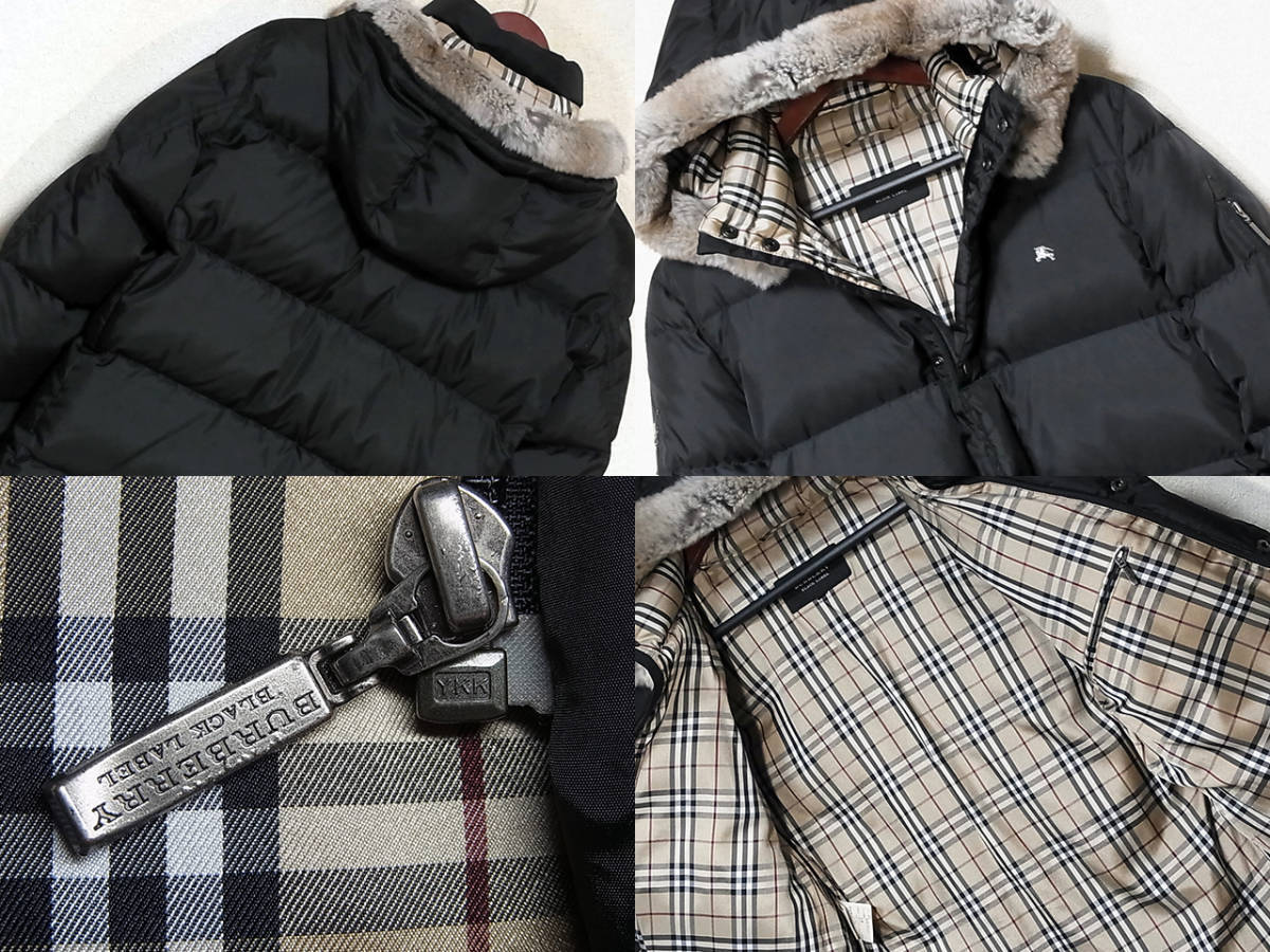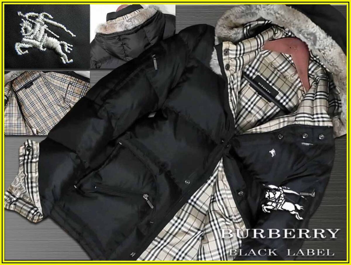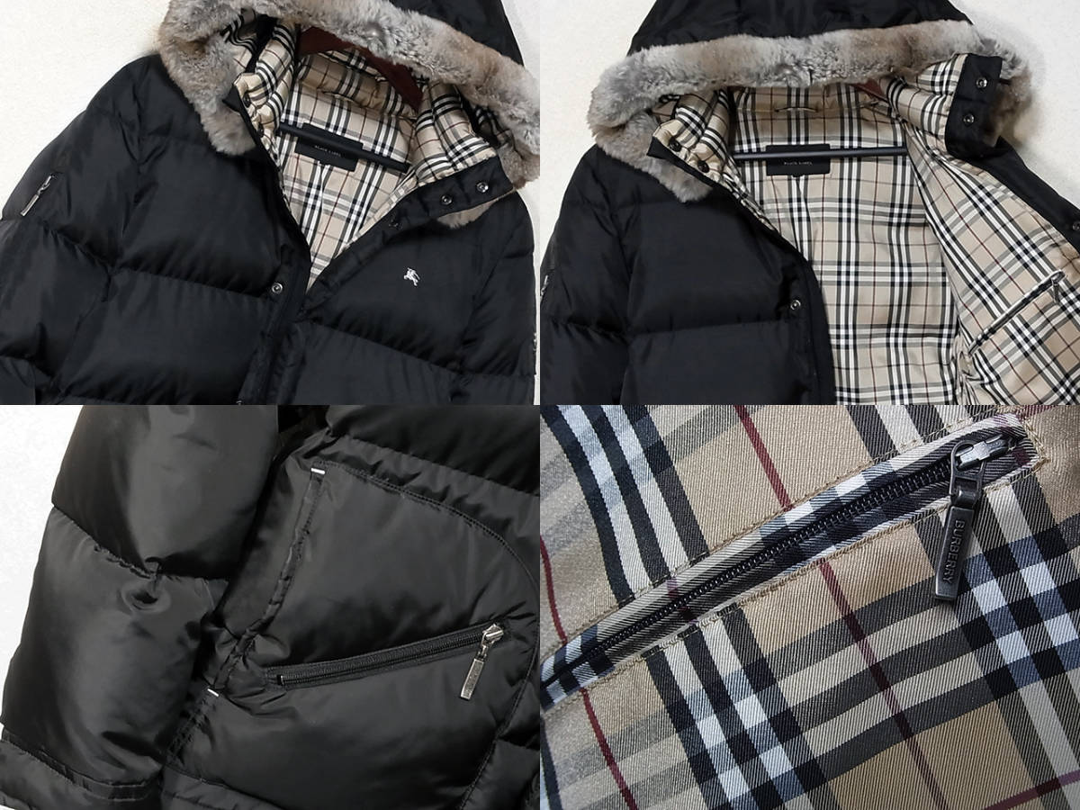 極上!ビバンダムダウンジャケット ブラック×ノバチェック ラビットファー サイズM▼バーバリーブラックレーベル BURBERRY BLACK LABEL