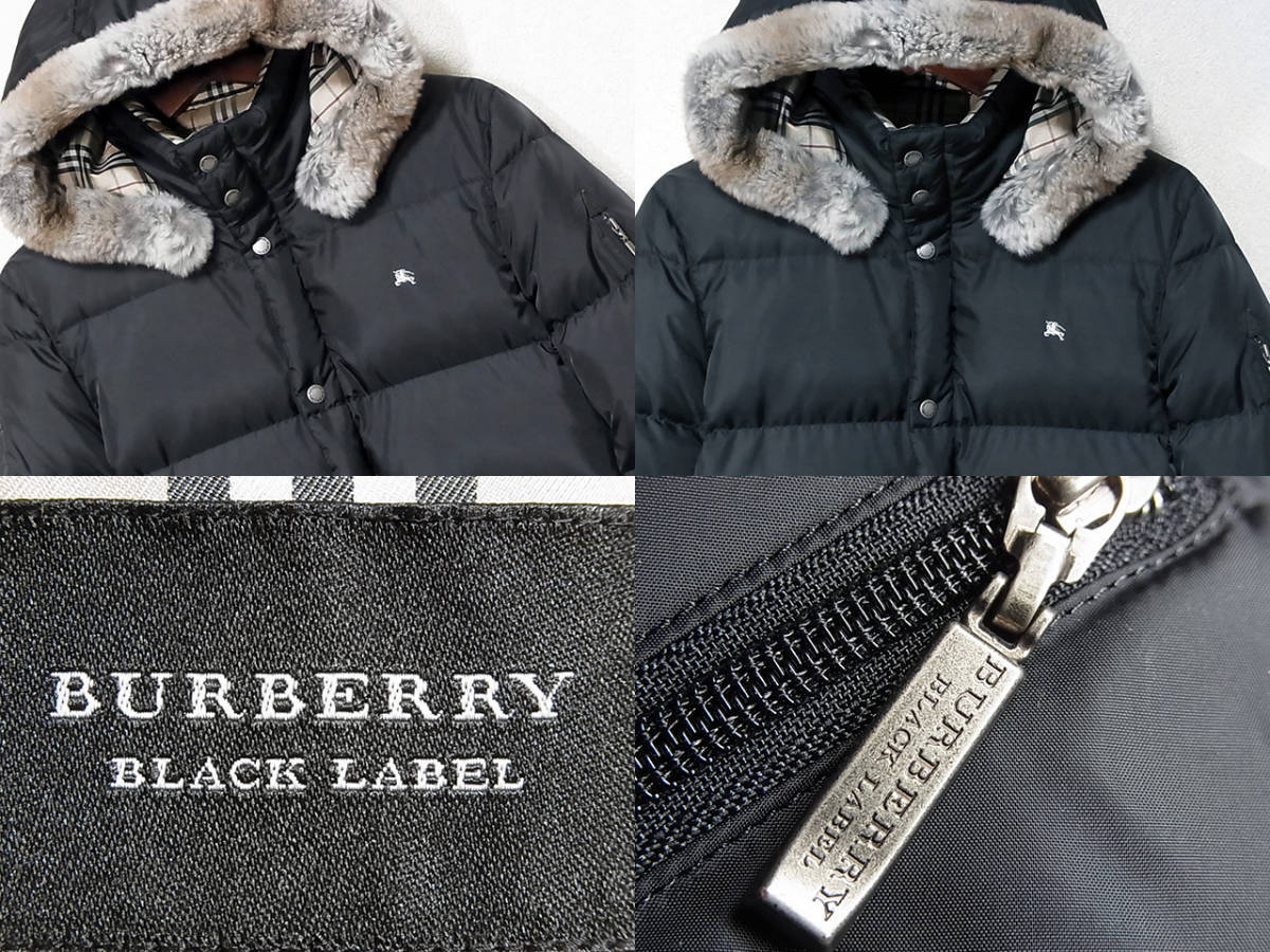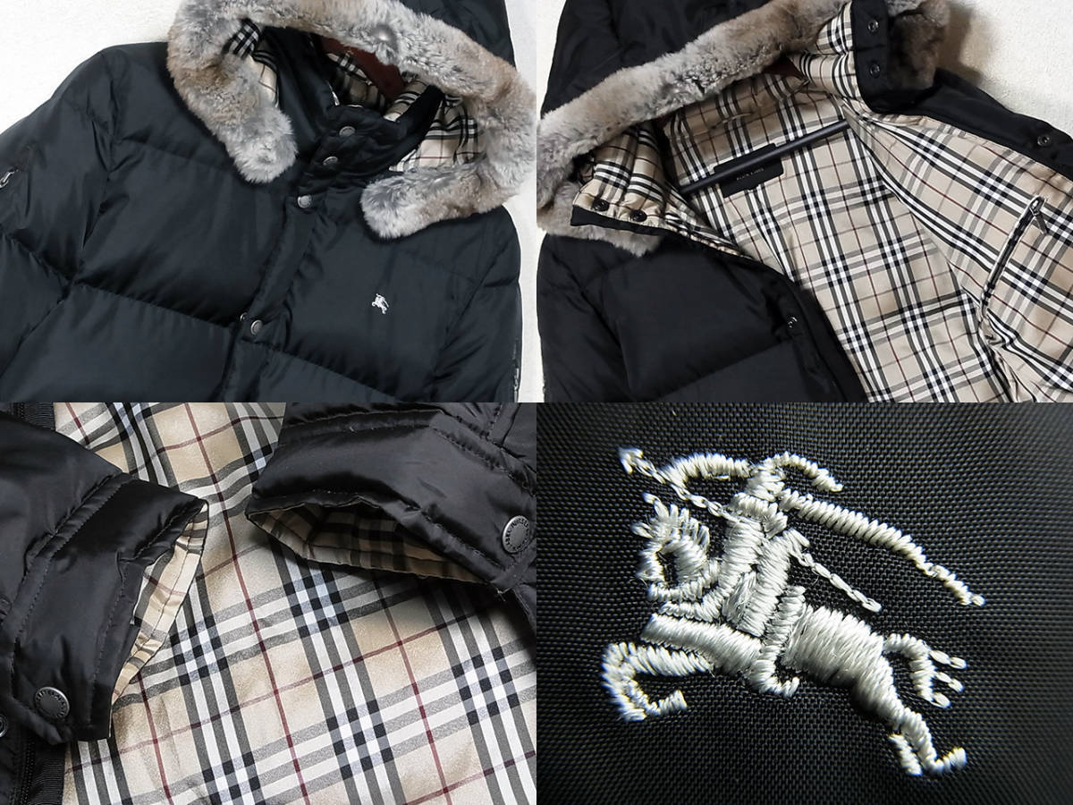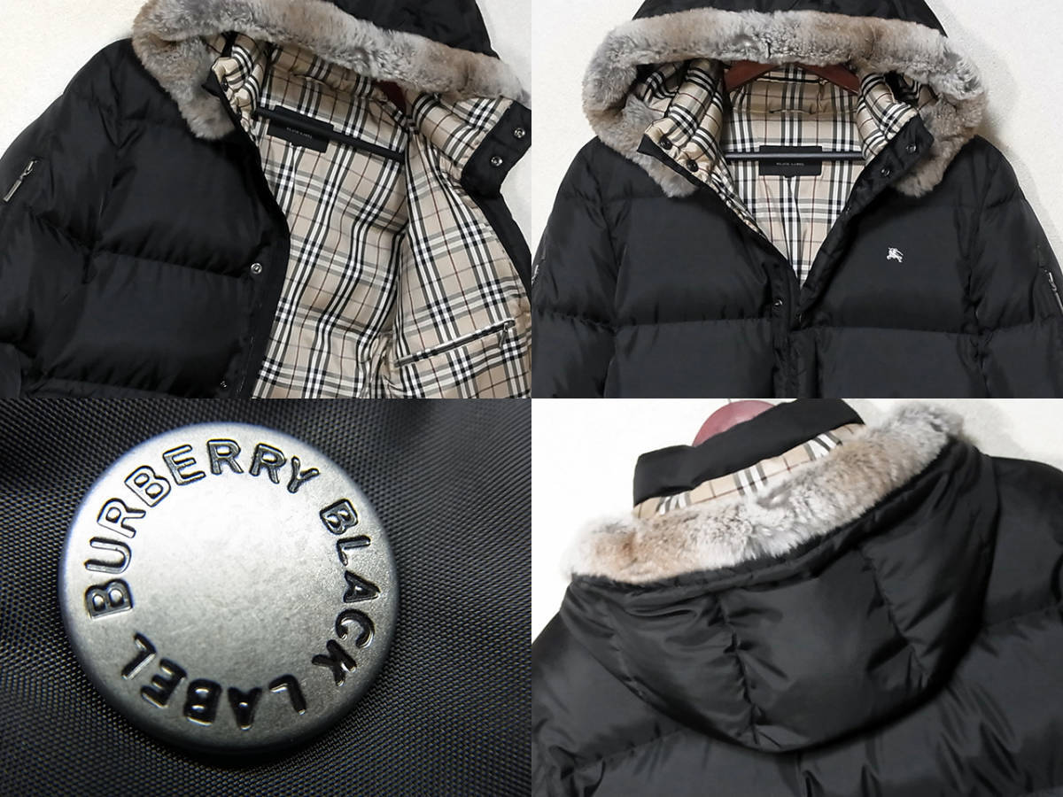 極上!ビバンダムダウンジャケット ブラック×ノバチェック ラビットファー サイズM▼バーバリーブラックレーベル BURBERRY BLACK LABEL