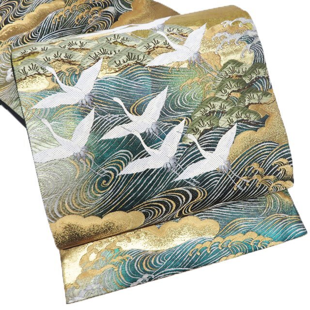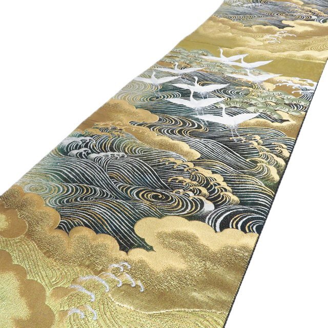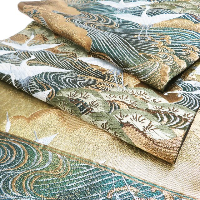 | サイズ 444cm x 31cm 素材 正絹 商品ランク B ●お色 多色 金銀 金銀の箔糸を贅沢に織り込み、華やかな鶴文様をあしらった上品な袋帯です。 波間に舞う鶴が優雅に映え、フォーマルな場面にふさわしい格調高さを備えています。 留袖・訪問着・色無地まで幅広くお合わせいただけ、晴れやかな式典やお祝いの席にも最適。 上質な箔の輝きが、装いを一層華やかに引き立てる一本です。 使用感の少ない、美しいお品物です。 一部商品は実店舗・他サイトでも並行して販売しておりますので売り切れの際はご了承ください。 その他多数出品中 ku- | ||||||
