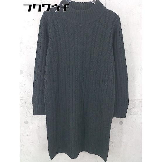◇ grove グローブ モックネック 長袖 膝丈 ニット ワンピース サイズM ブラック レディース