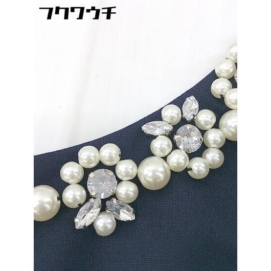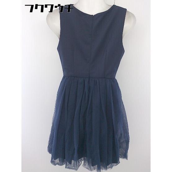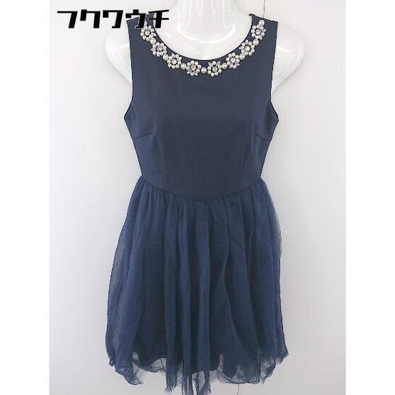 ◇ L'EST ROSE 装飾 ビジュー 切替 チュール ノースリーブ ミニ ドレス ワンピース サイズ S ネイビー レディース