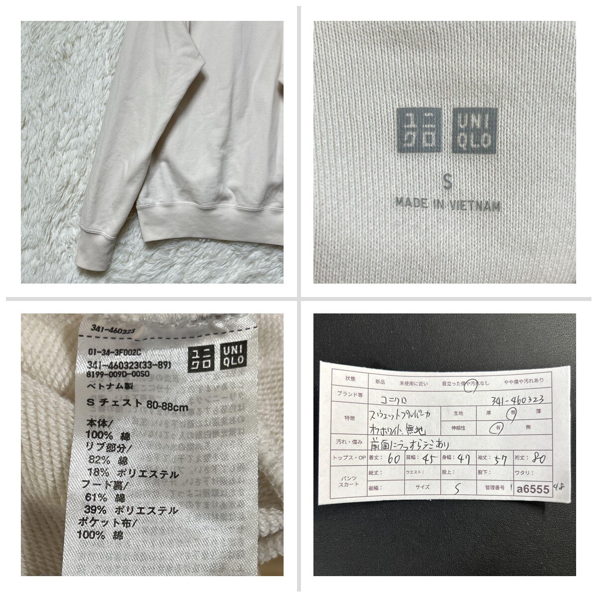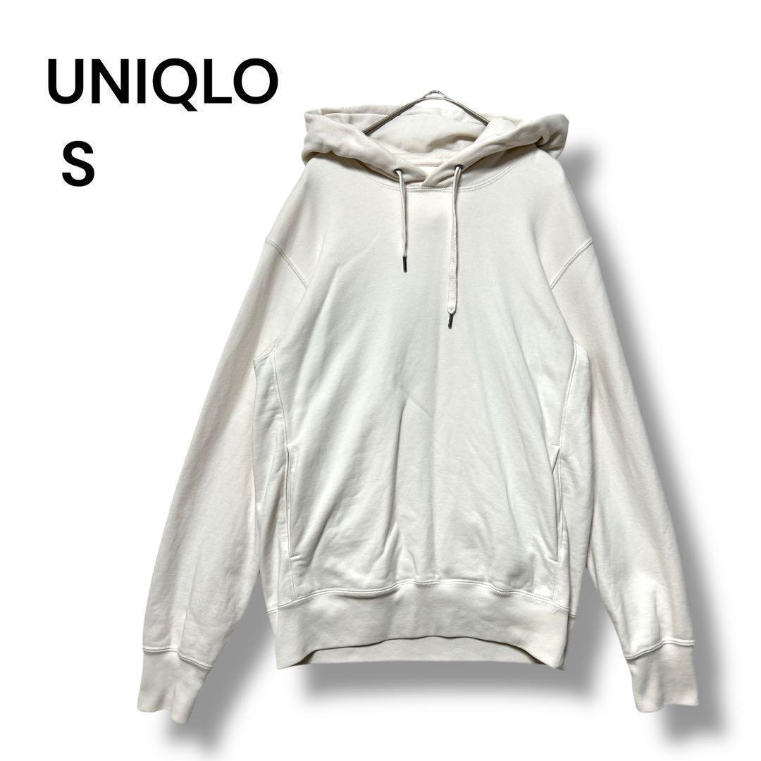 ユニクロ スウェットプルパーカ S オフホワイト 無地 シンプル ストレッチ 72CD82