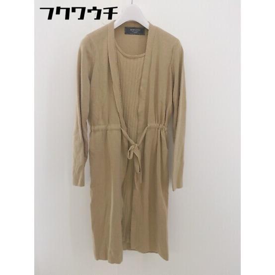 ◇ BEAMS LIGHTS ビームス ライツ ウエストリボン 長袖 膝丈 ニット ワンピース サイズ38 ベージュ レディース