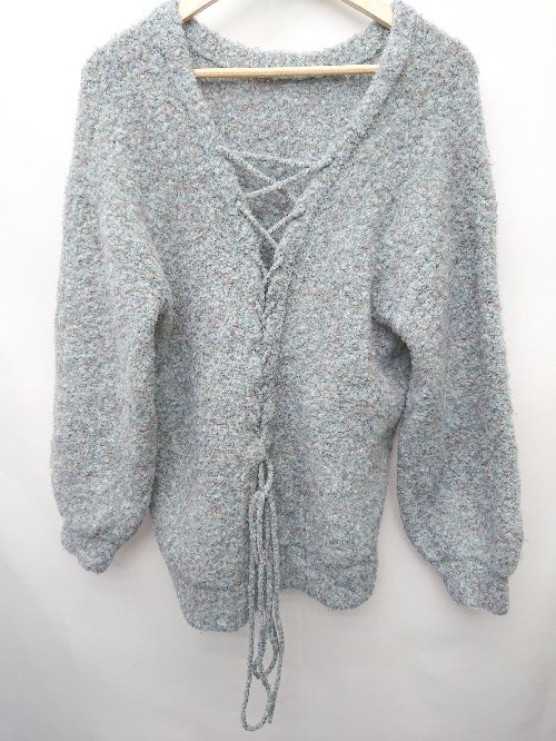 ◇ Heather ヘザー 長袖 ニット セーター サイズF ブルー グレー マルチ レディース P