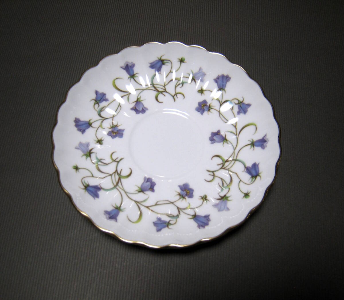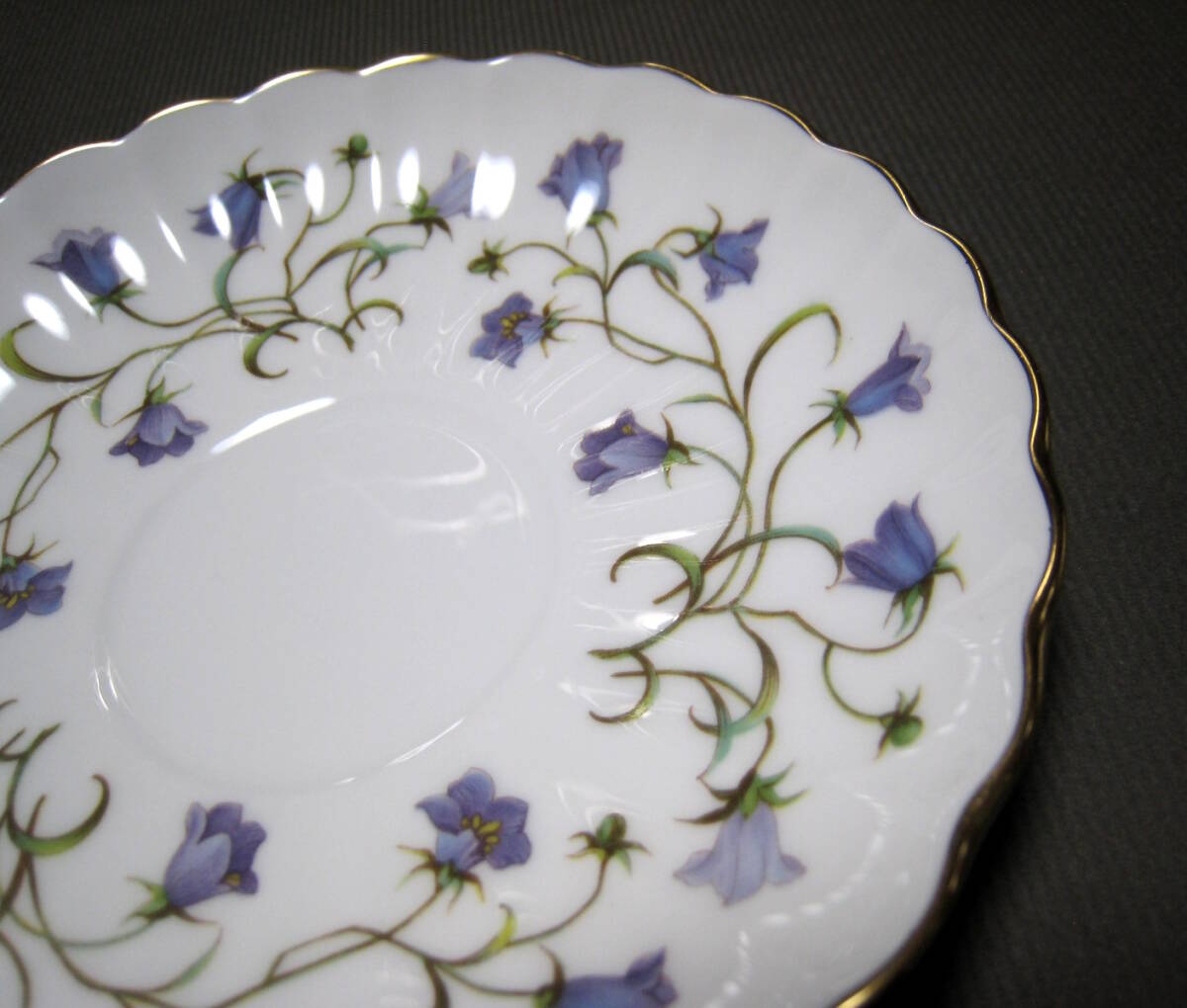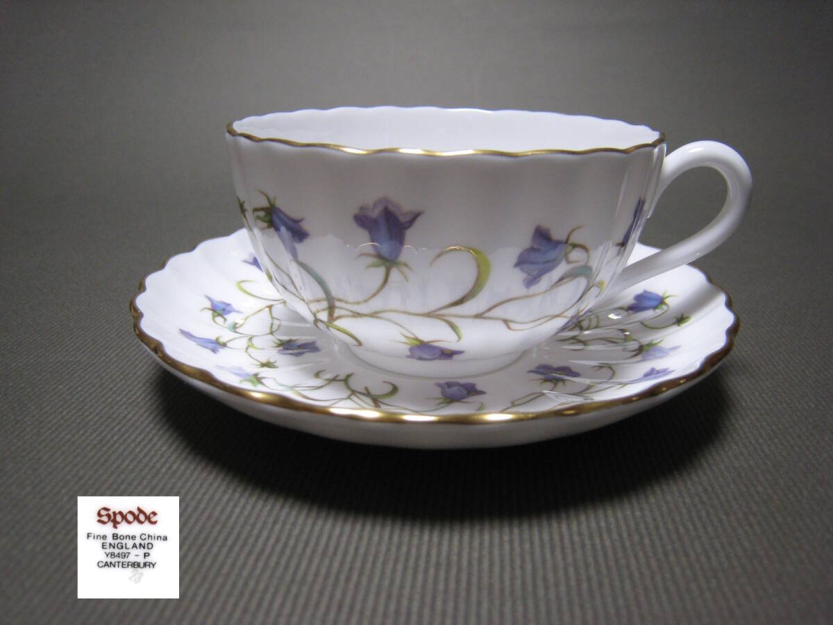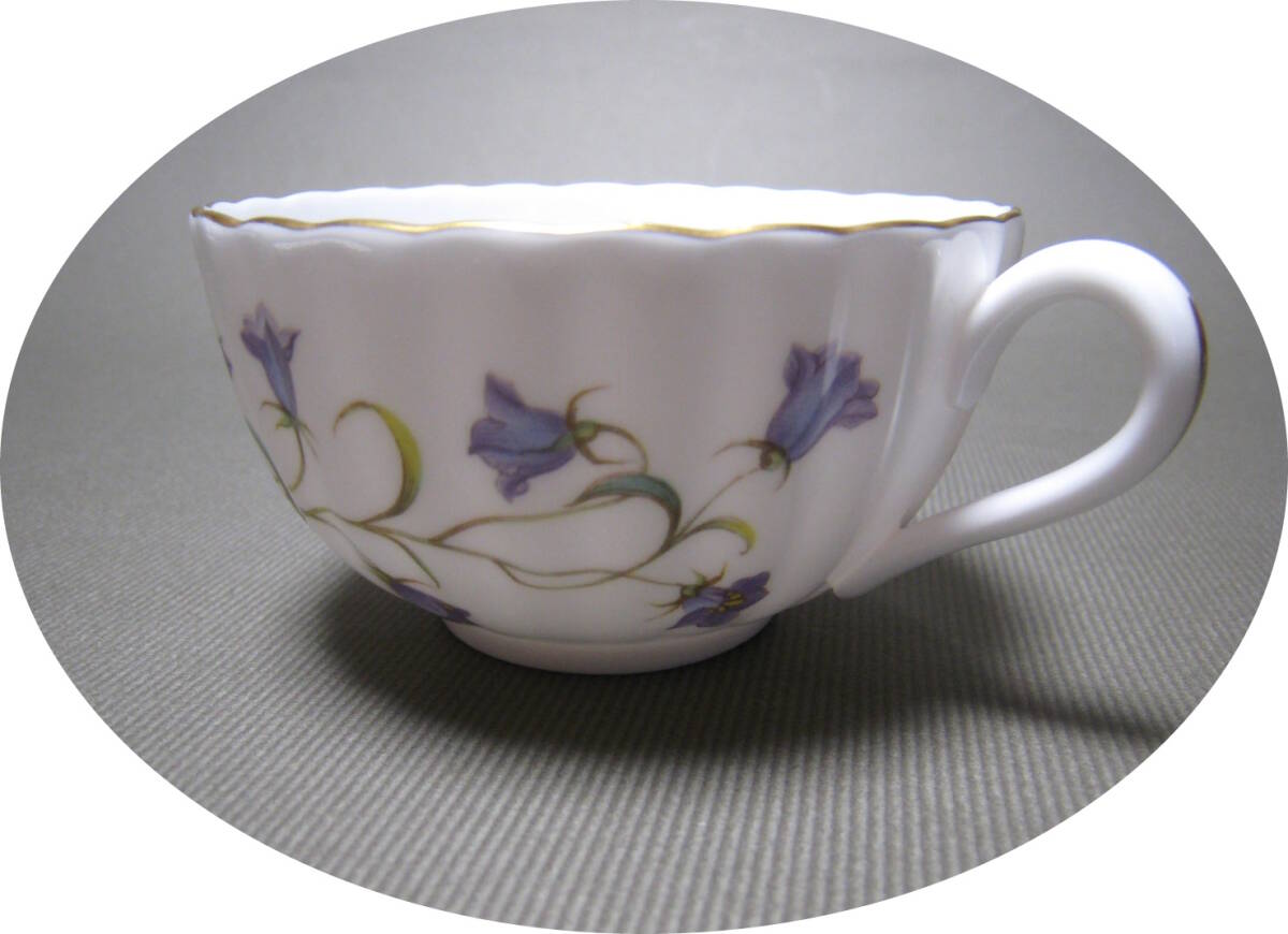 硬質なボーンチャイナ製に愛らしい紫色のつりがね草をモチーフにしたスポードのカップ&ソーサー その2です。