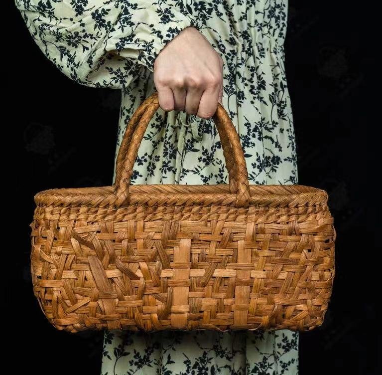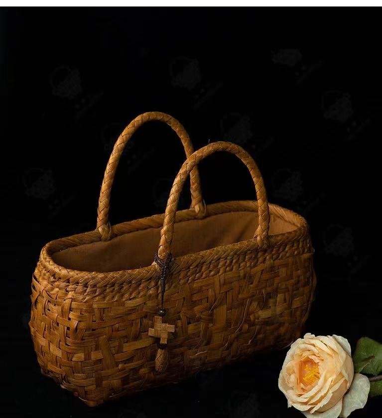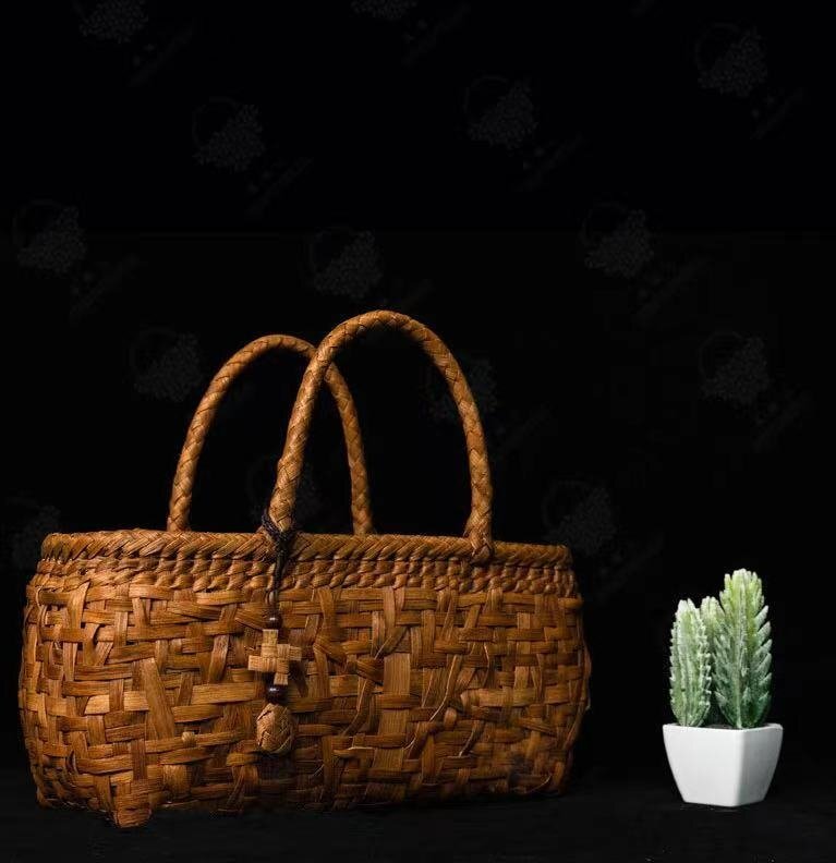 美品★高品質★職人手作り良品 山葡萄かごバッグ 手編み山葡萄籠バッグ バスケット籐かご  高級UPハンドバック