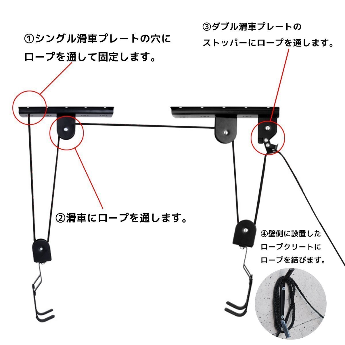 ![]() ■自転車をオシャレにディスプレイ! 自転車置き場が狭く、収納に困っている際や、 自転車をオシャレに飾りたいと思っている方にオススメ! 天吊リフト収納が出来る本商品なら、 お気に入りの自転車をおしゃれにディスプレイ出来ると同時に ガレージ等のスペースを有効活用して省スペースに飾って頂けます! ■サドルとハンドルをフックに引っ掛け、ロープを引くだけで設置可能。 ■フック部にはキズ防止、滑り止め目的のゴムカバー付き 重量(約):1.8kg ロープ長さ(約):12m 耐荷重(約):20kg未満 材質:本体スチール製 英文簡易説明書付き ※取り付けに関しては一度専門業者様へご相談することをおすすめ致します。 ※本商品を使用した事による落下事故・破損等に関する責任は一切負いかねます。予めご了承下さい。 ※剛性が弱いと脱落することがありますので、取り付け場所の材質・強度などを考慮の上、お取り付けください。 ※工具は付属しておりません。