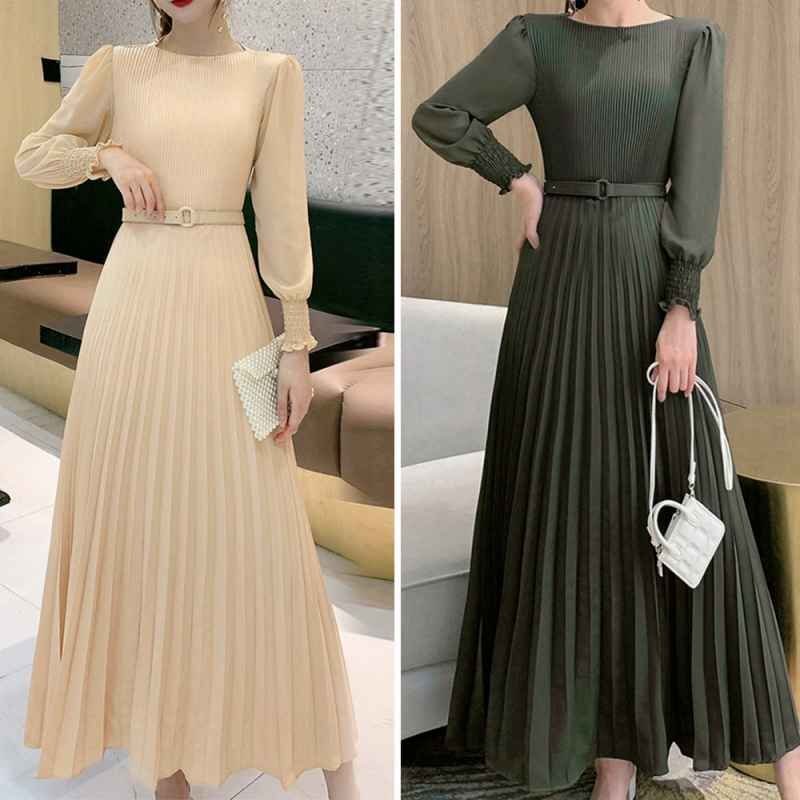 伸縮性:なし(プリーツの広がりにより楽に着られます。)