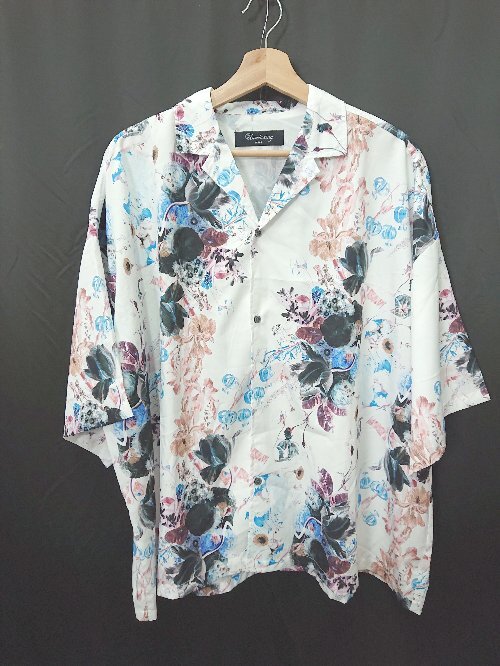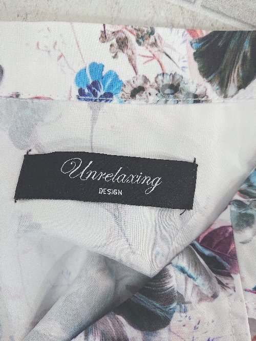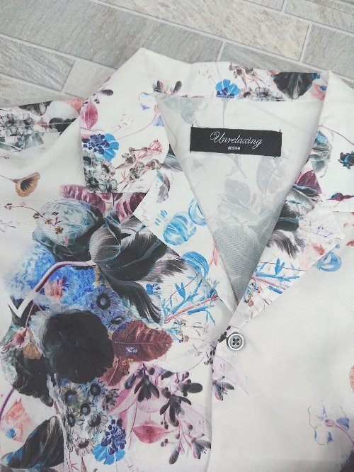 ◇ ⊂ unrelaxing アンリラクシング 花柄 半袖 オープンカラー シャツ サイズF ホワイト系 マルチ メンズ E
