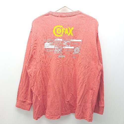 ◇ BAYFLOW COFAX コラボ バックプリント クルーネック 長袖 Tシャツ カットソー サイズ4 レッド オレンジ メンズ E
