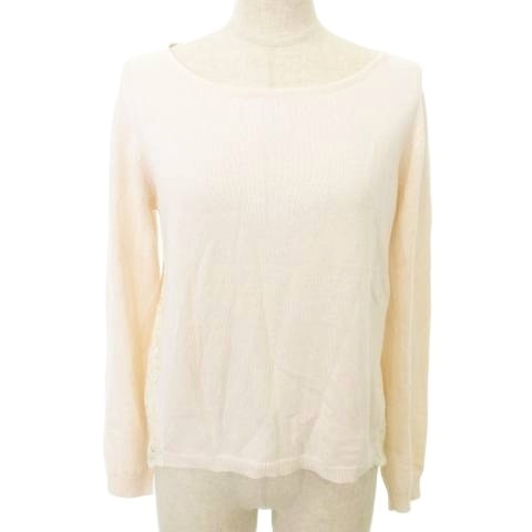グリーンレーベルリラクシング ユナイテッドアローズ ニット 長袖 レース 無地 ボートネック 約Mサイズ ピンク ■YHS2 レディース