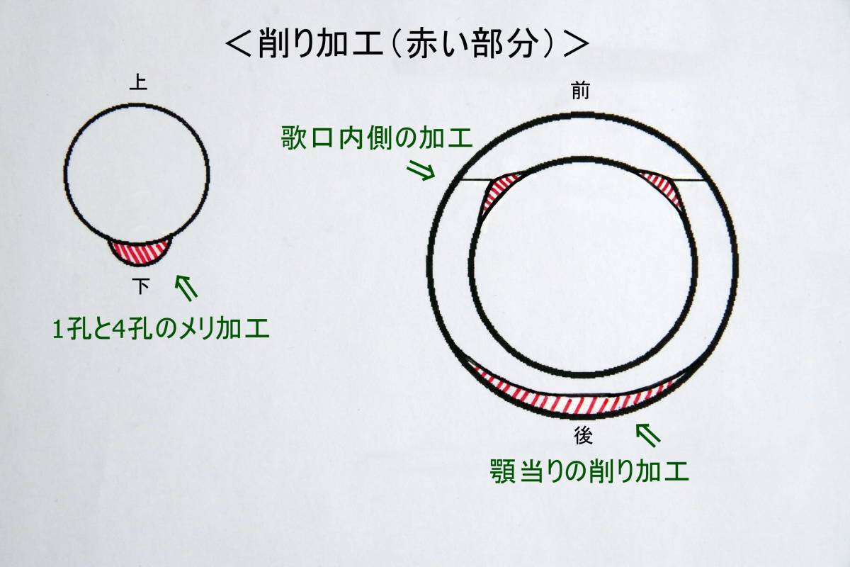 ・ 5孔 (1孔と4孔には、メリ音が出しやすいように削り加工済・・・画像参照