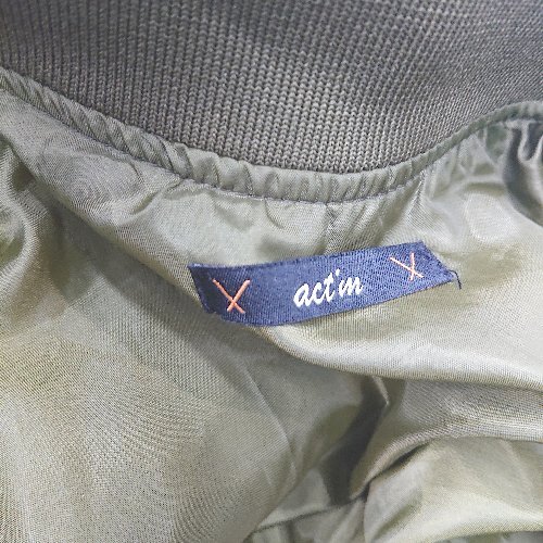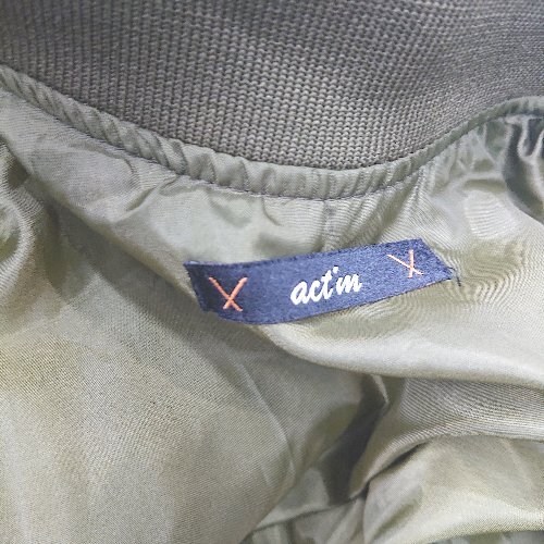 ■ ⊇ act'm アクトム ブランドロゴタグ 長袖 MA-1 サイズ表記なし カーキ レディース メンズ E