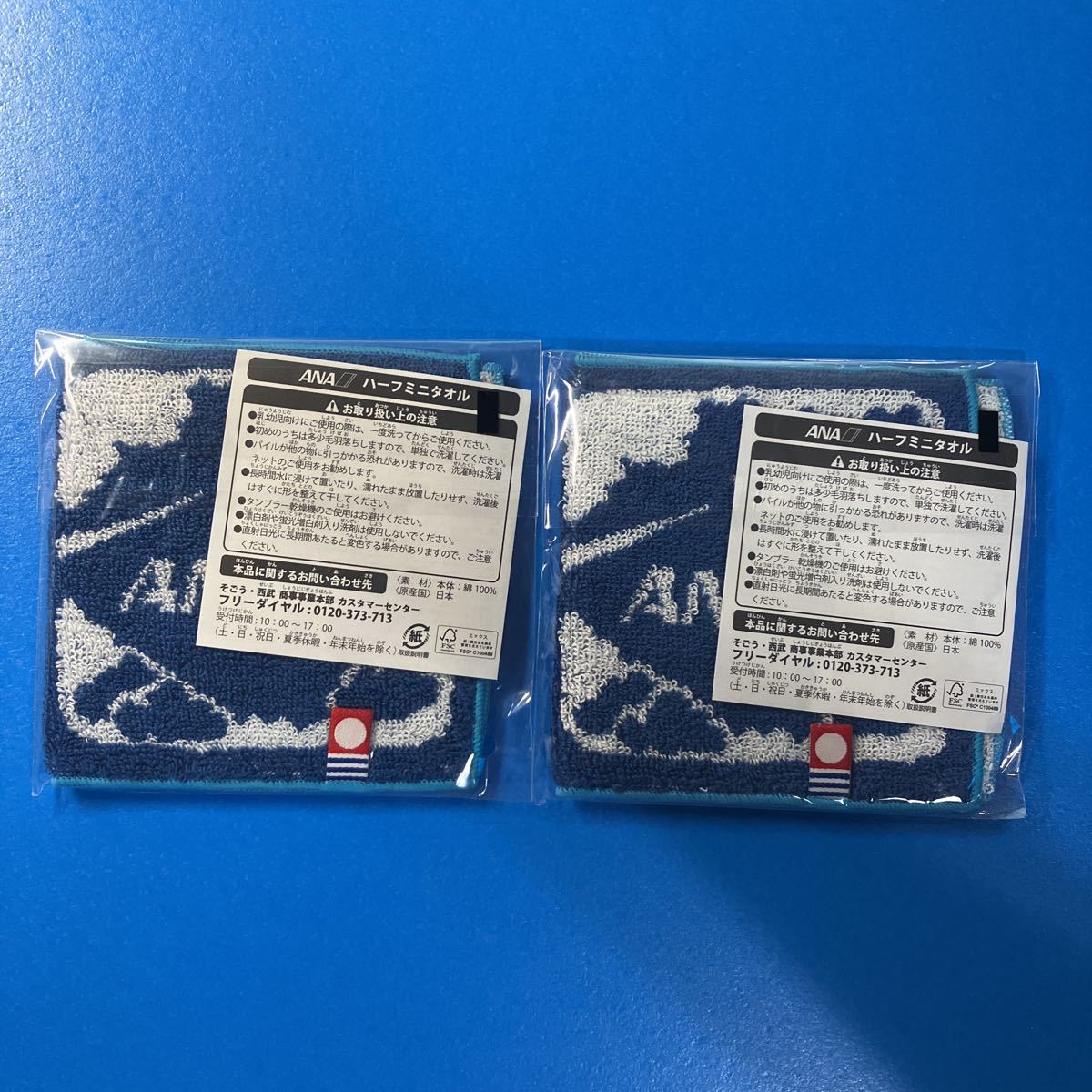 ★送料無料5★ ANA 今治 ハーフ ミニタオル×2枚 ひこうき ノベルティ 全日本空輸 ブルー 青 日本製 綿100% ハンカチ ハンドタオル アナ