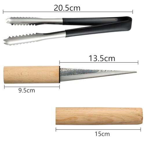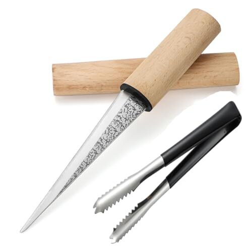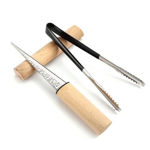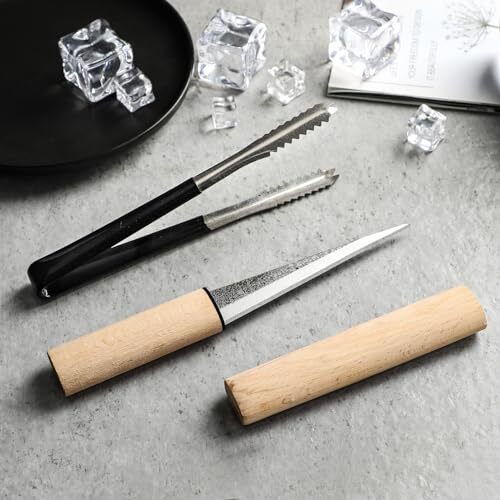 アイスナイフ バーテンダー 氷ナイフ 氷包丁 氷割り 氷彫刻用 木製ハンドル 木製保護キャップ アイストング付き