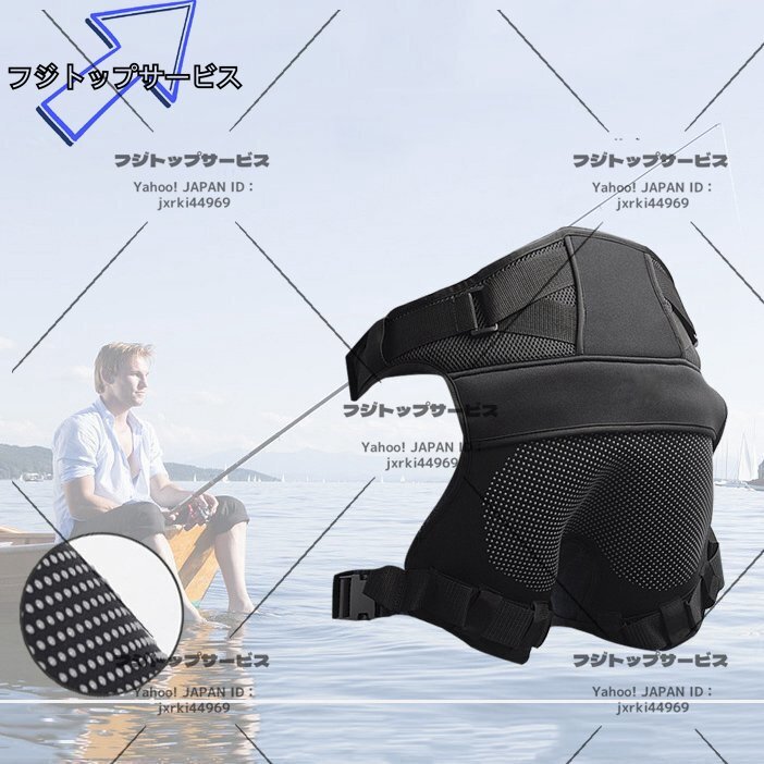 ウエストはベルト式で、サイズはアジャスト可能です。 磯などでは尻餅をついた時の怪我防止にも効果的です。 船釣りではエンジンによる振動を軽減し、疲労を抑える効果もあります。 完全な防水ではありませんので防水ウエアなどの上に装着することをお勧めします。