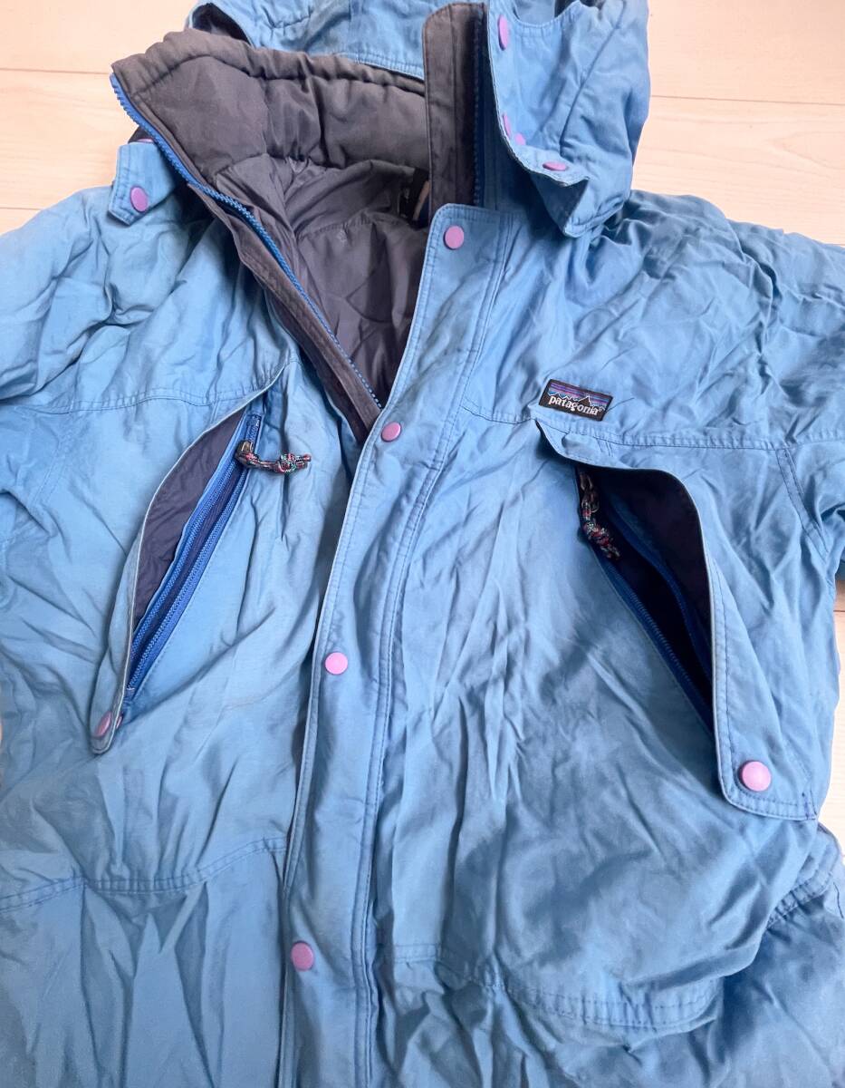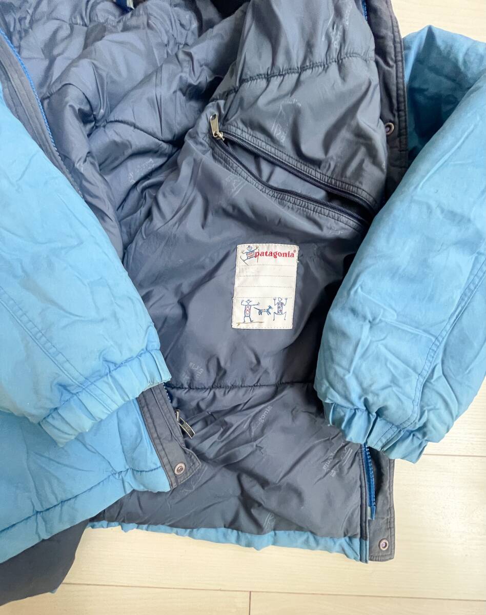 90s patagonia パタゴニア ガイドパーカ フード付き 中綿マウンテンジャケット キッズ14サイズ 日焼けフェード
