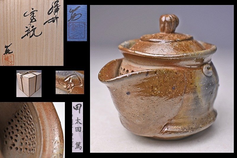 サイズは 107mmx82mmx高さ94mm です。 備前の 太田篤 氏の 作品です。 窯変の 宝瓶をぜひどうぞ。宅配便80サイズにて発送します。 他にも多数出品してます。同梱対応いたします。
