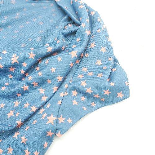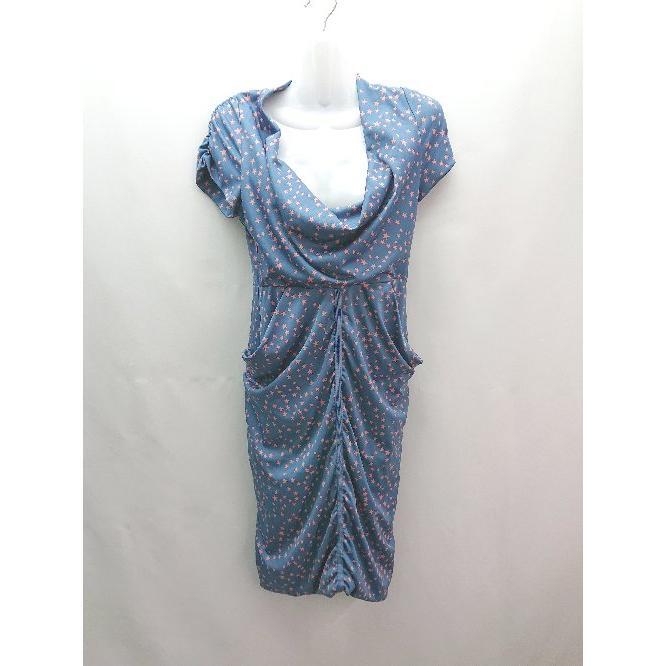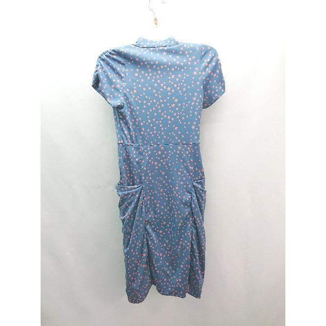 ◇ LITTLE NEW YORK 星柄 総柄 伸縮性 タイト 半袖 膝丈 ワンピース サイズM ブルー レディース E