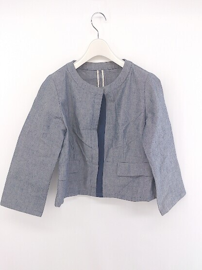 ◇ BEAMS LIGHTS ビームス ライツ 長袖 ノーカラー ジャケット サイズ36 ネイビー レディース