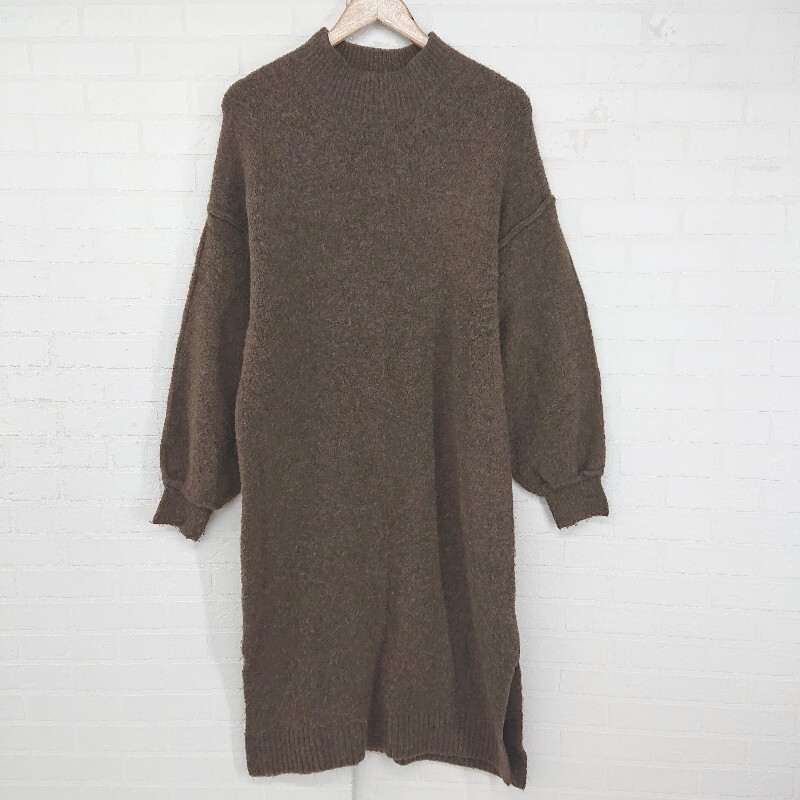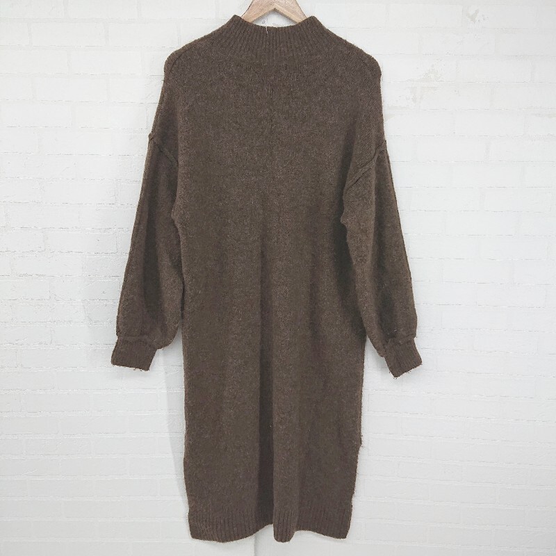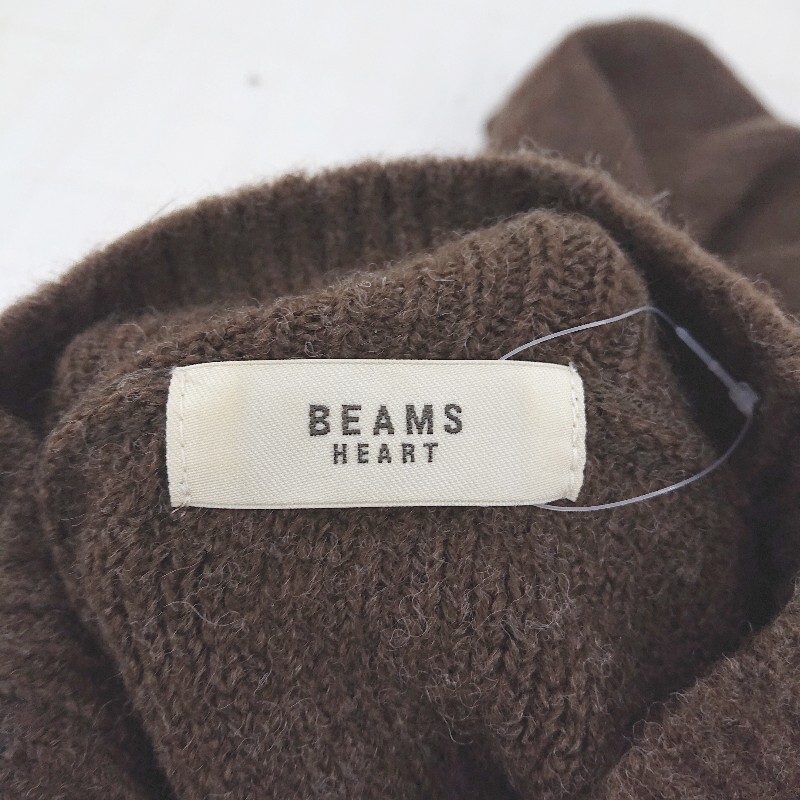 ◇ BEAMS HEART ハイネック カジュアル ニット 長袖 膝下丈 ワンピース ブラウン レディース P