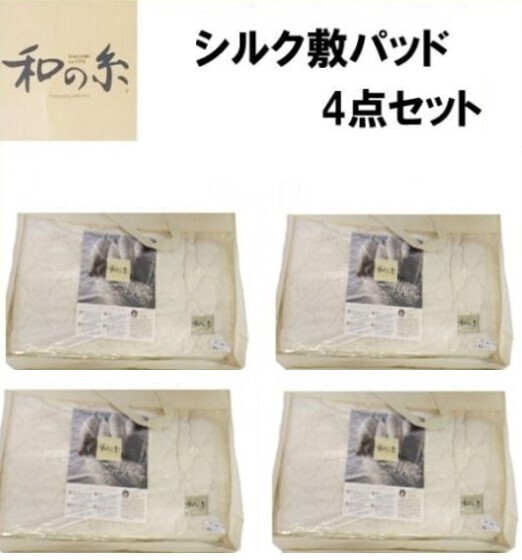 【F098】未使用・保管品★敷パット 4枚セット シングル用 マルショー 和の糸 スヴィンシルク SMSXK1002 約105×200㎝ アイボリー 敷パッド