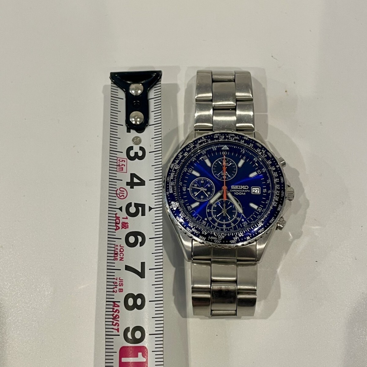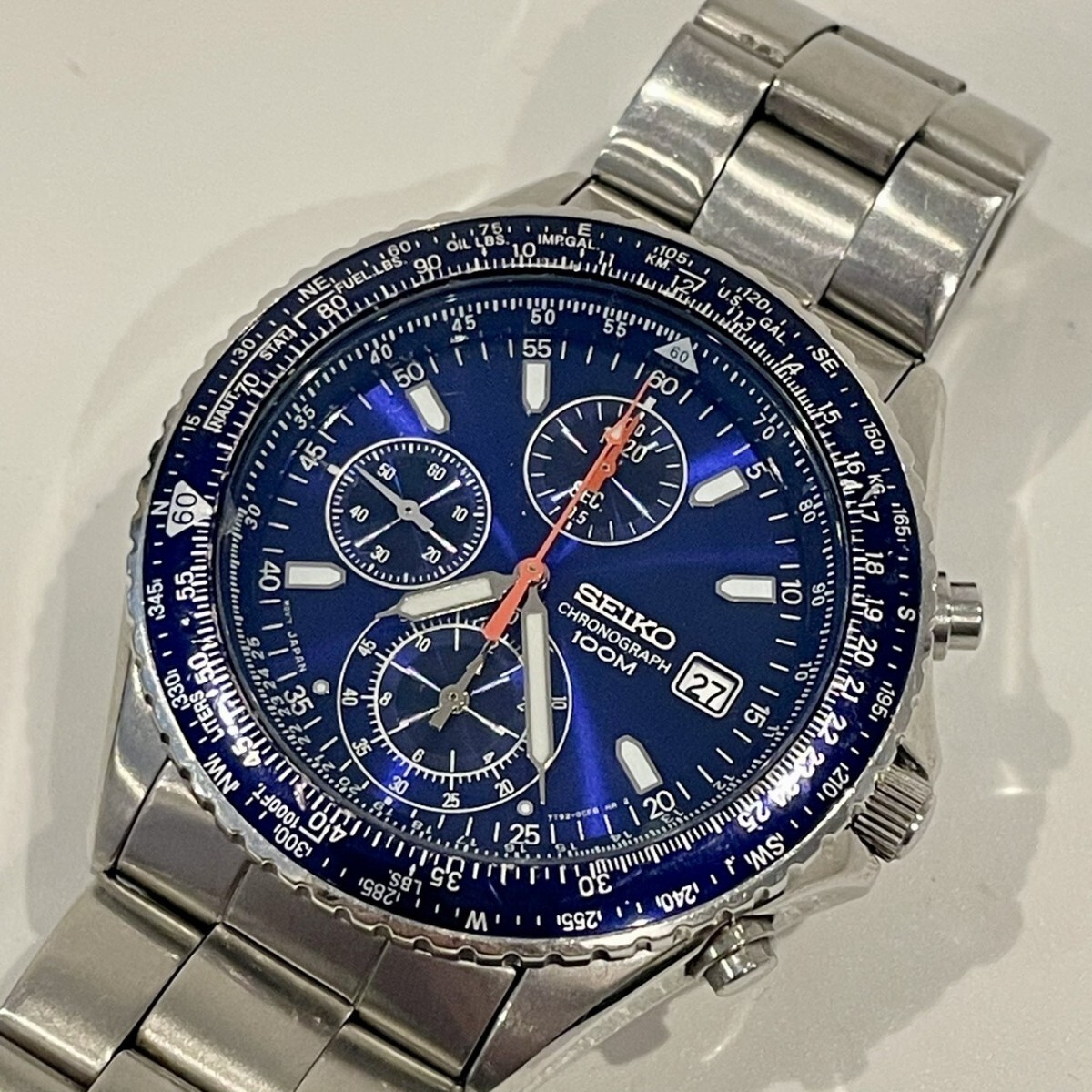 1円〜 SEIKO クロノグラフ 100M セイコー 腕時計 ブルー文字盤 パイロットウォッチ S202