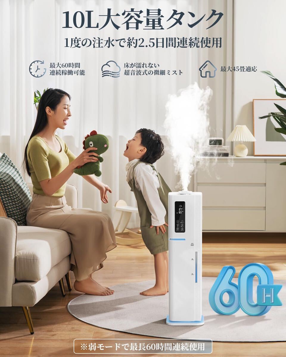 たっぷり10Lの超大容量で、しっかり加湿できます。