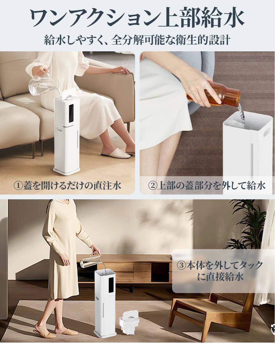 ダブルノズルを搭載したタワー式超音波加湿器で、超微細なミストを高く・広く噴出。