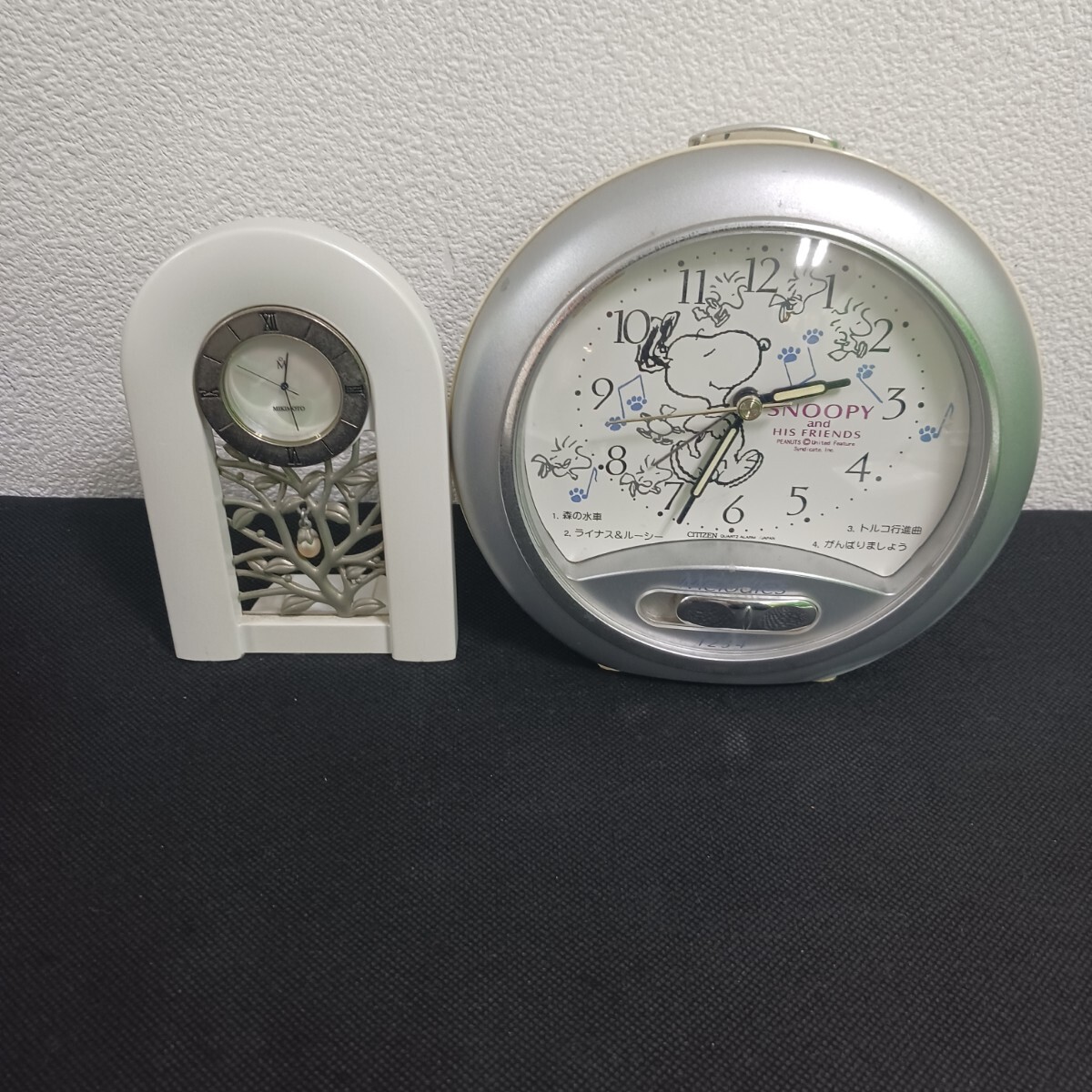MIKIMOTO シェル文字盤 置時計/スヌーピー 目覚まし時計