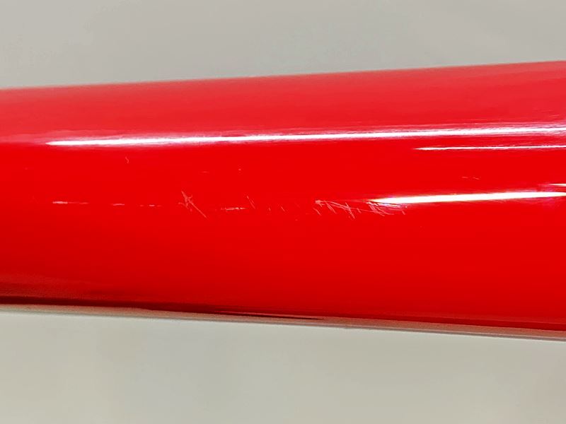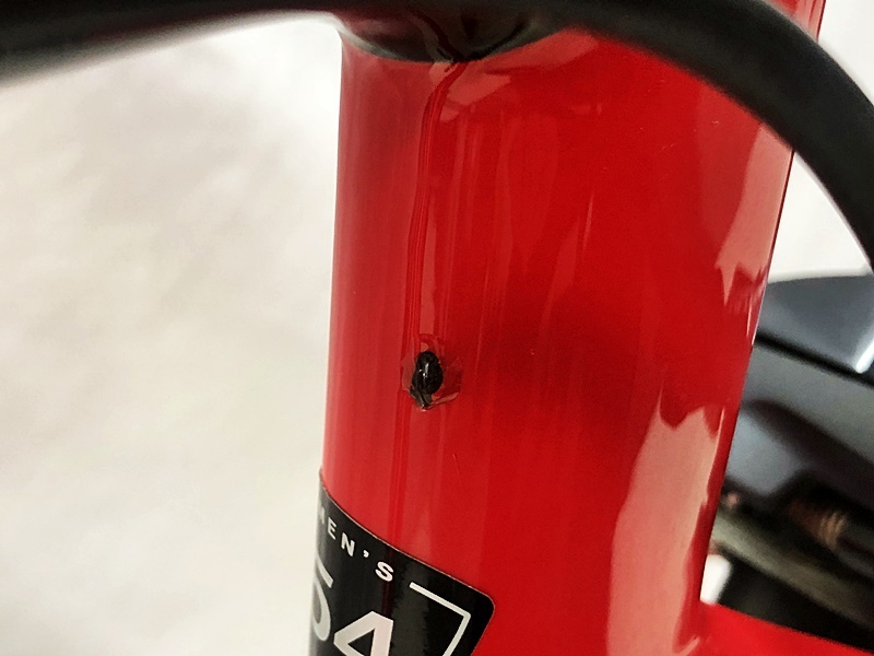フレーム、その他外観:訳アリの理由は、トップチューブ、シートチューブ左側に補修跡があり、元の状態が不明なことから、訳アリの現状お渡し車体となります。