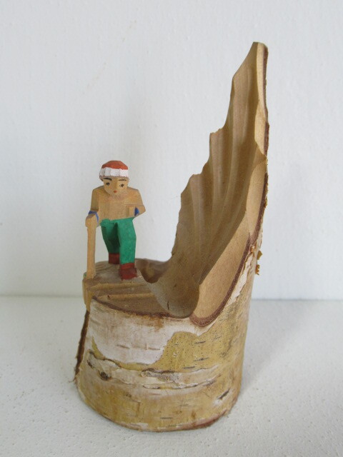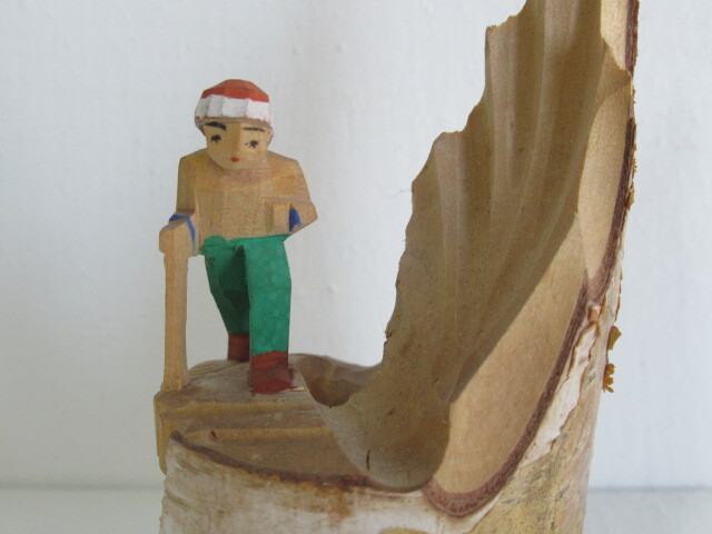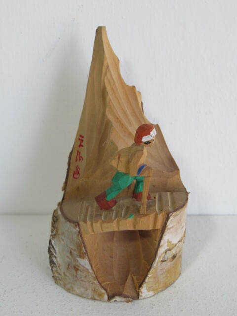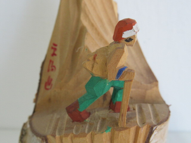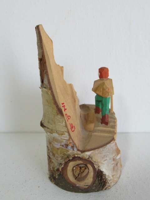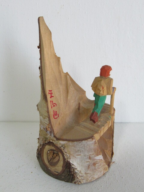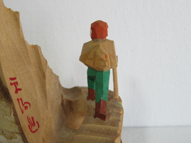 【虫】農民美術.一刀彫①(平湯温泉でしょうか)/登山(全高10cm)●郷土玩具.土人形.木彫り.こけし.木地玩具.絵葉書