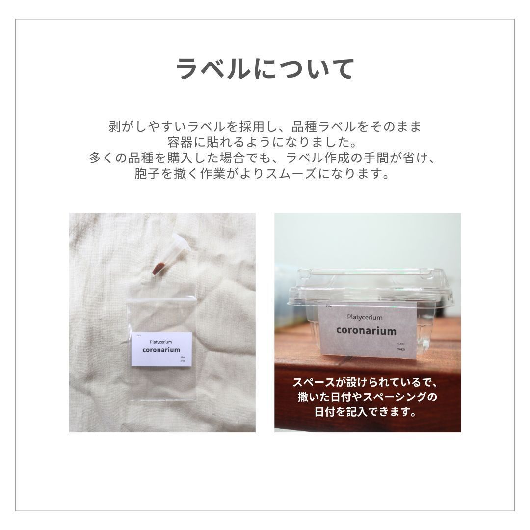 各胞子はチューブに入れ、チャック付きの袋で丁寧に梱包して発送いたします。配送中の破損を防ぎ、安心してお受け取りいただけます。