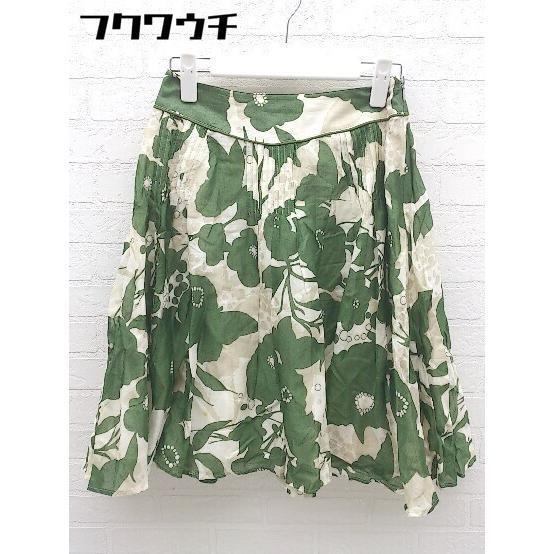 ◇ La TOTALITE ラ トータリテ 総柄 ミニ フレア スカート サイズ36 グリーン ベージュ レディース