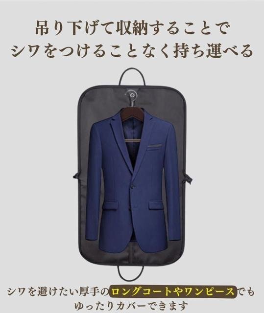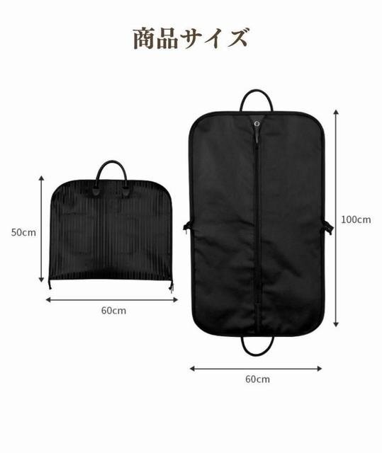 二つ折り時:60*50サイズで、スーツ以外にもノートパソコンや、折り畳み傘なども入れられます