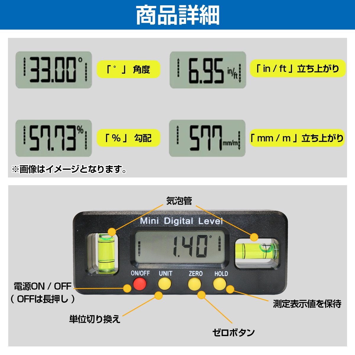 100mm デジタル レベル 水平器 傾斜計 角度計 液晶 表示 レベラー 水平 角度 傾斜 測定 測量 DIY マグネット 付き 工具 ミニ