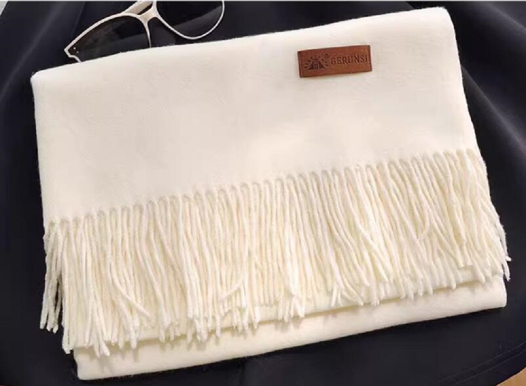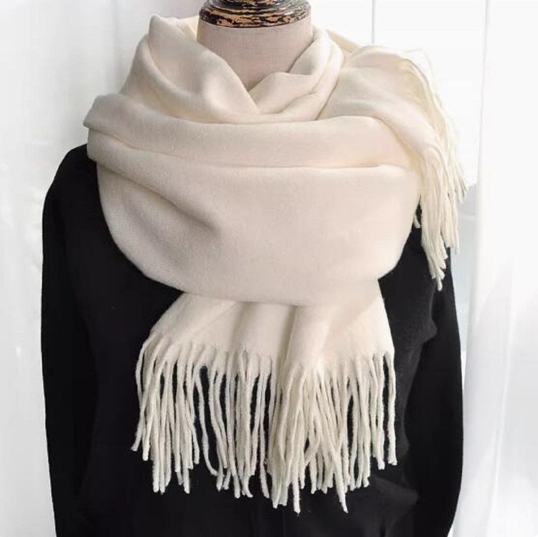 「送料無料」☆新品 定番上質大判 シンプル無地  カシミヤ  ストール マフラー ユニセックス  ホワイト