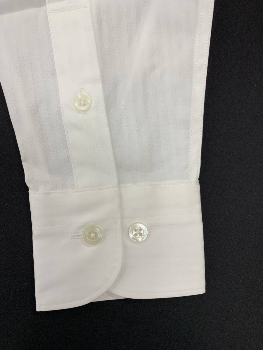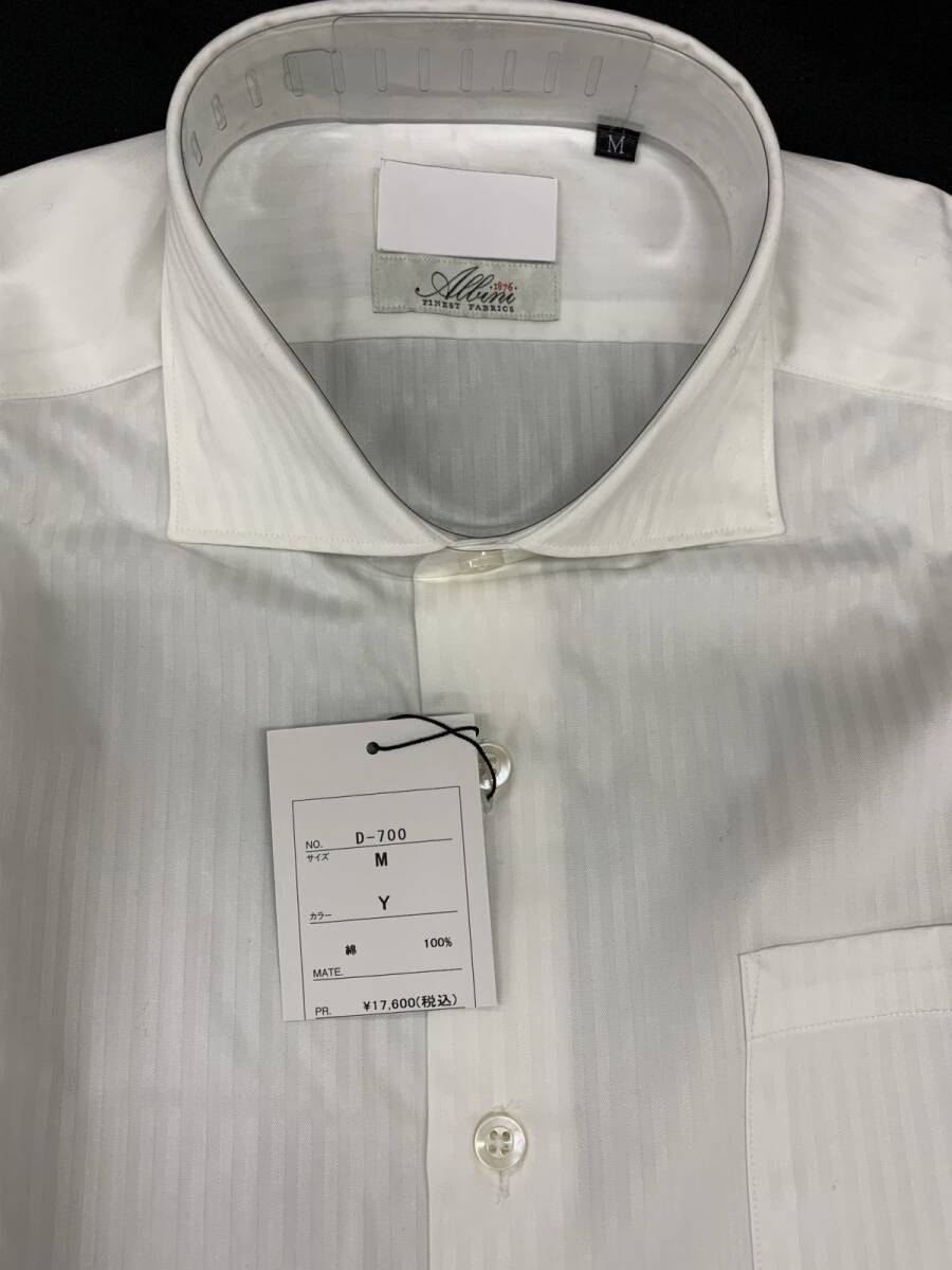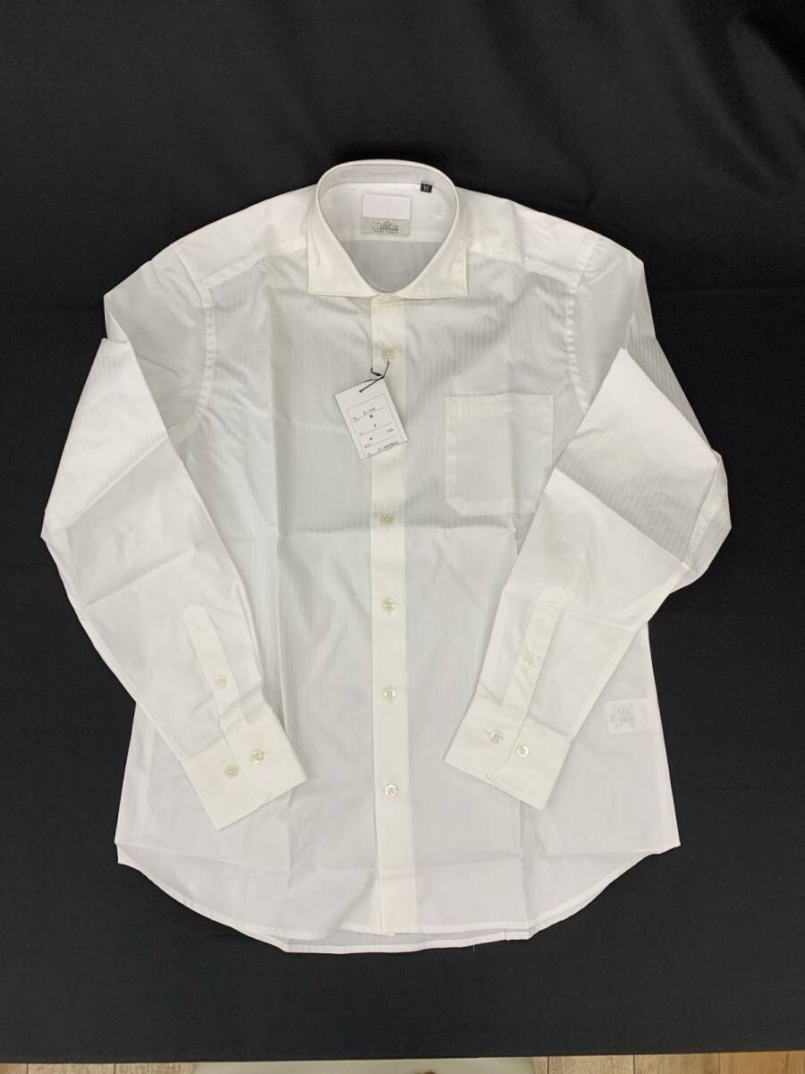 17,600円 高級ブランド 日本製 綿100% アルビニ メンズ ストライプ ホワイト ドレスシャツ Mサイズ 新品 カッターシャツ 白 セール 128ー8