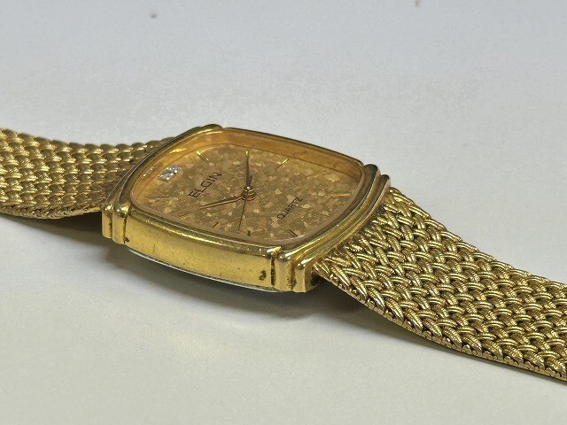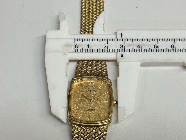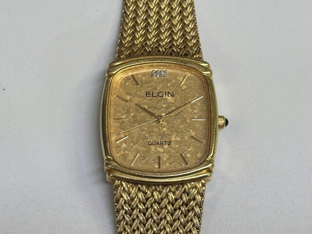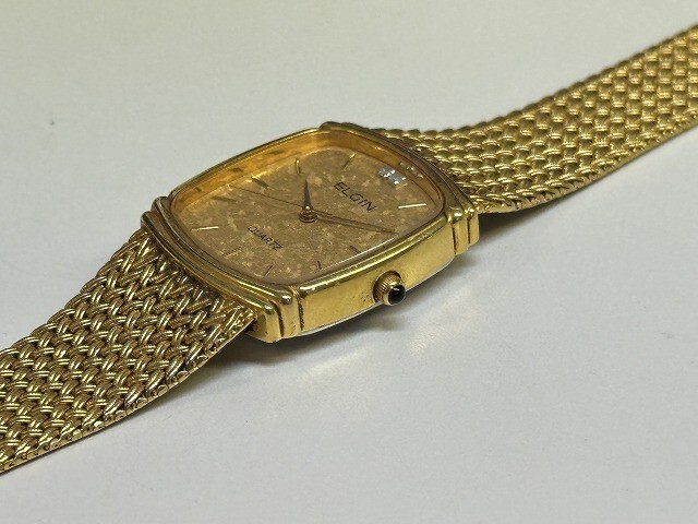 D2739-N43-153◎ ELGIN エルジン FK282 ゴールド文字盤 メンズ クォーツ 腕時計 現状品3◎