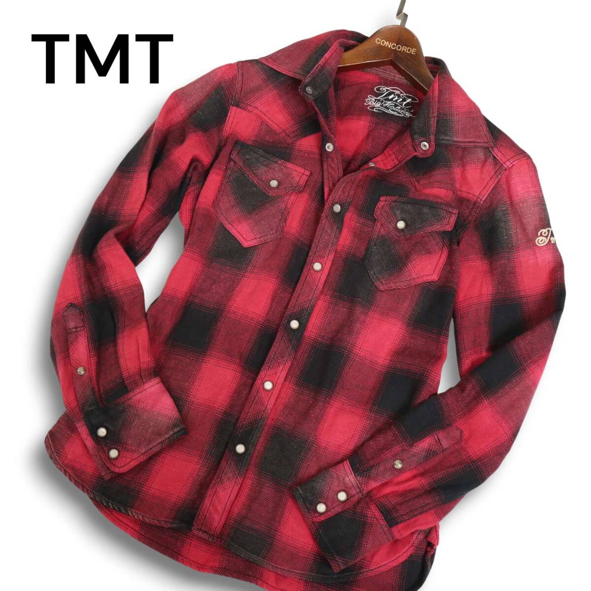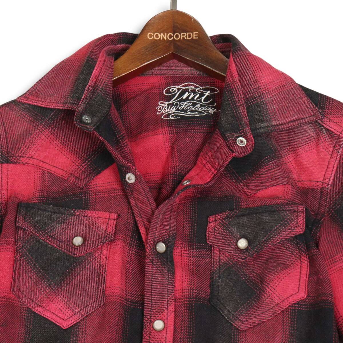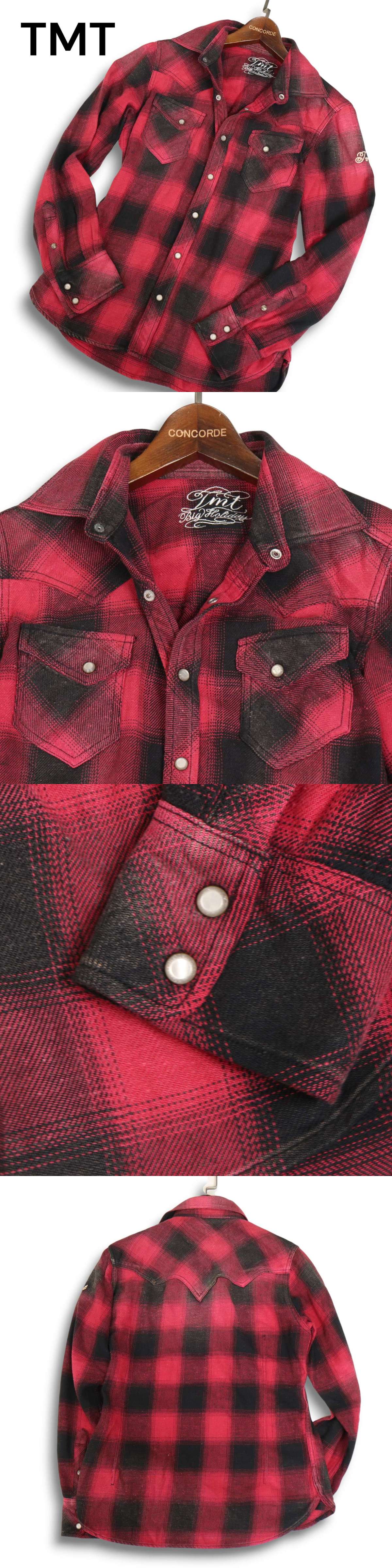 TMT ティーエムティー TSH-F14EC04 秋冬 ヴィンテージ ネップ★ 長袖 ウエスタン チェック ネル シャツ Sz.S メンズ 赤