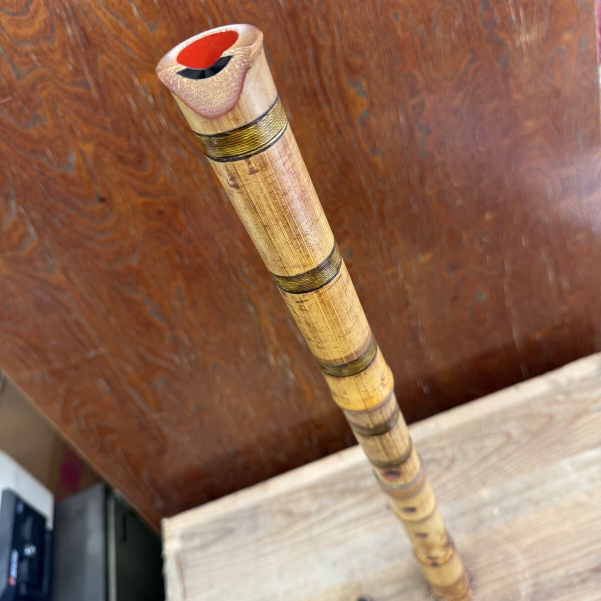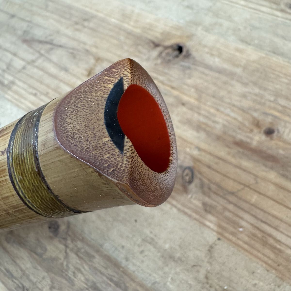 吹き口部分には赤い塗りが施され、伝統尺八を思わせる深みある仕上がり。