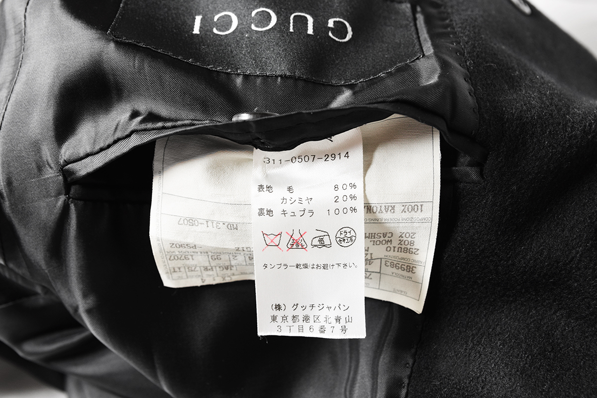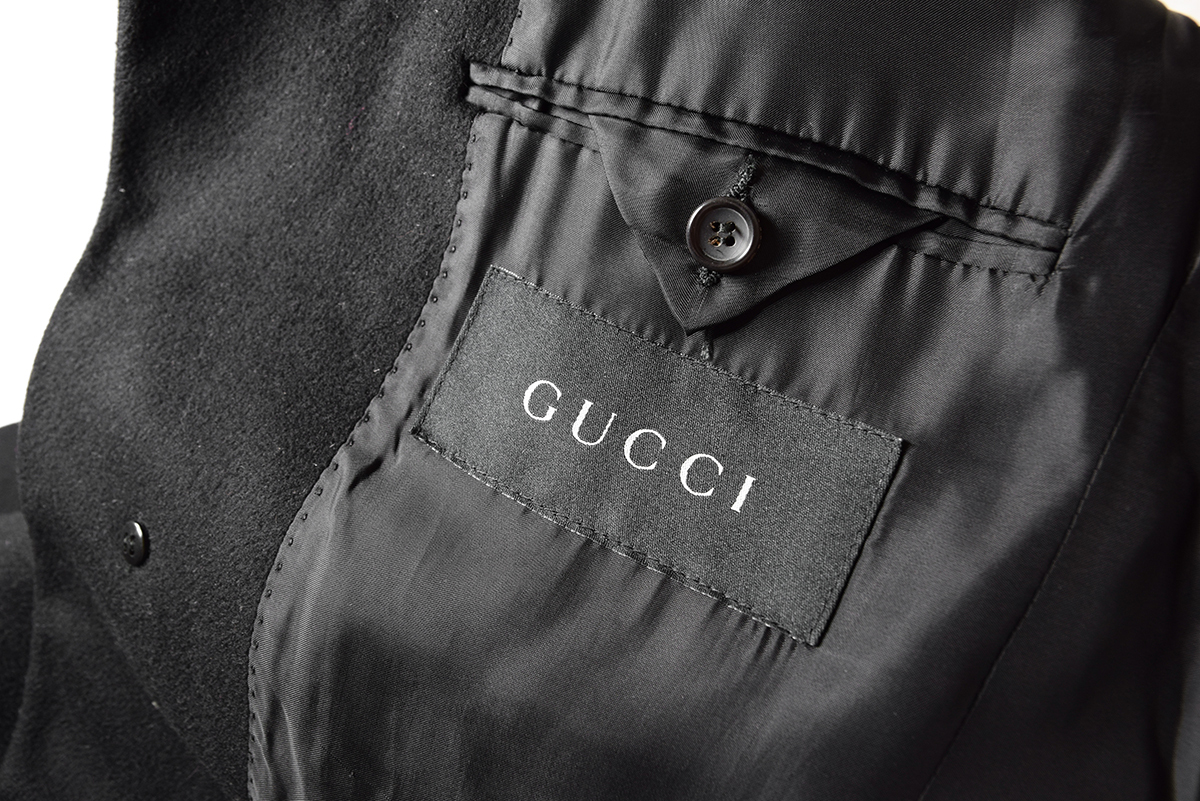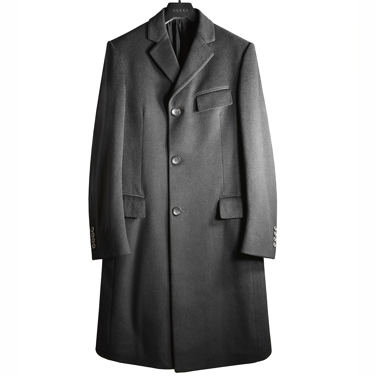 カシミヤブレンドのウールメルトンを仕様したグッチのチェスターコートです。