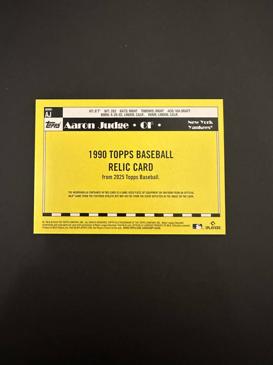 2年連続mvpを受賞したニューヨーク・ヤンキースのアーロン・ジャッジ選手の実使用ユニフォーム付カードです。