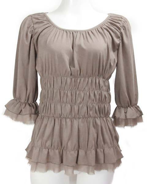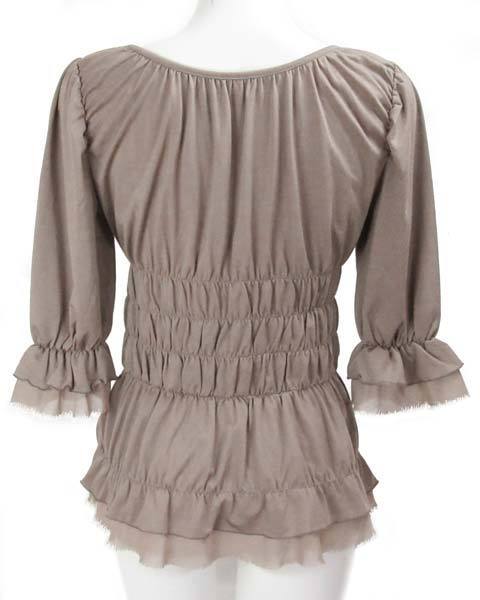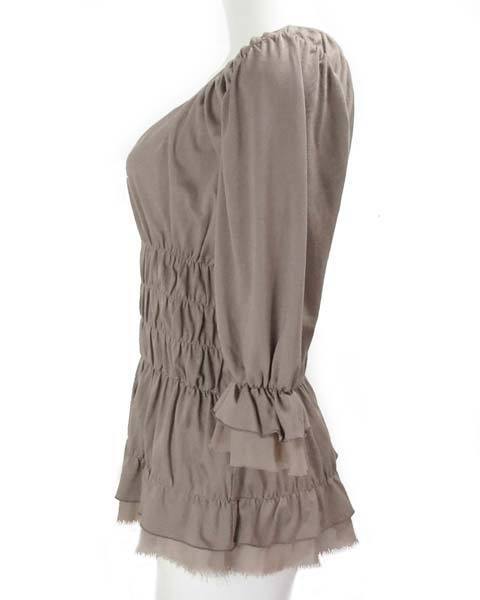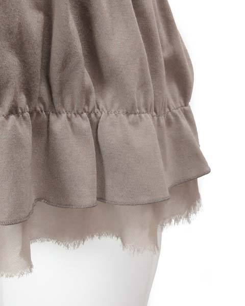 | 上品で素敵なカットソー。お袖口や裾にシフォン使いがあり、女性らしいデザイン。きちんと感のあるスカートやパンツからカジュアルなデニムスタイルまで幅広くコーディネートして頂けます。濃い目のグレージュでシックなスタイルが楽しめます。 |