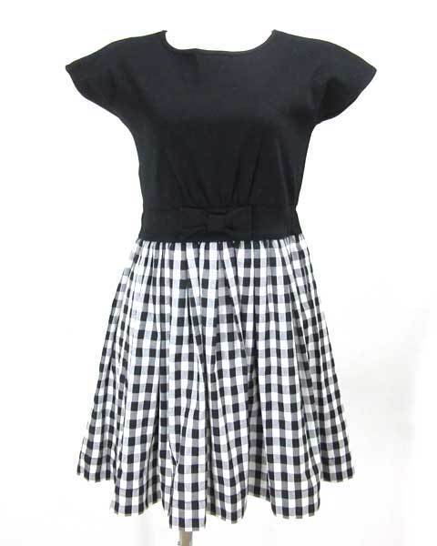 | ケイトスペイド katespade 黒切替チェックワンピース |